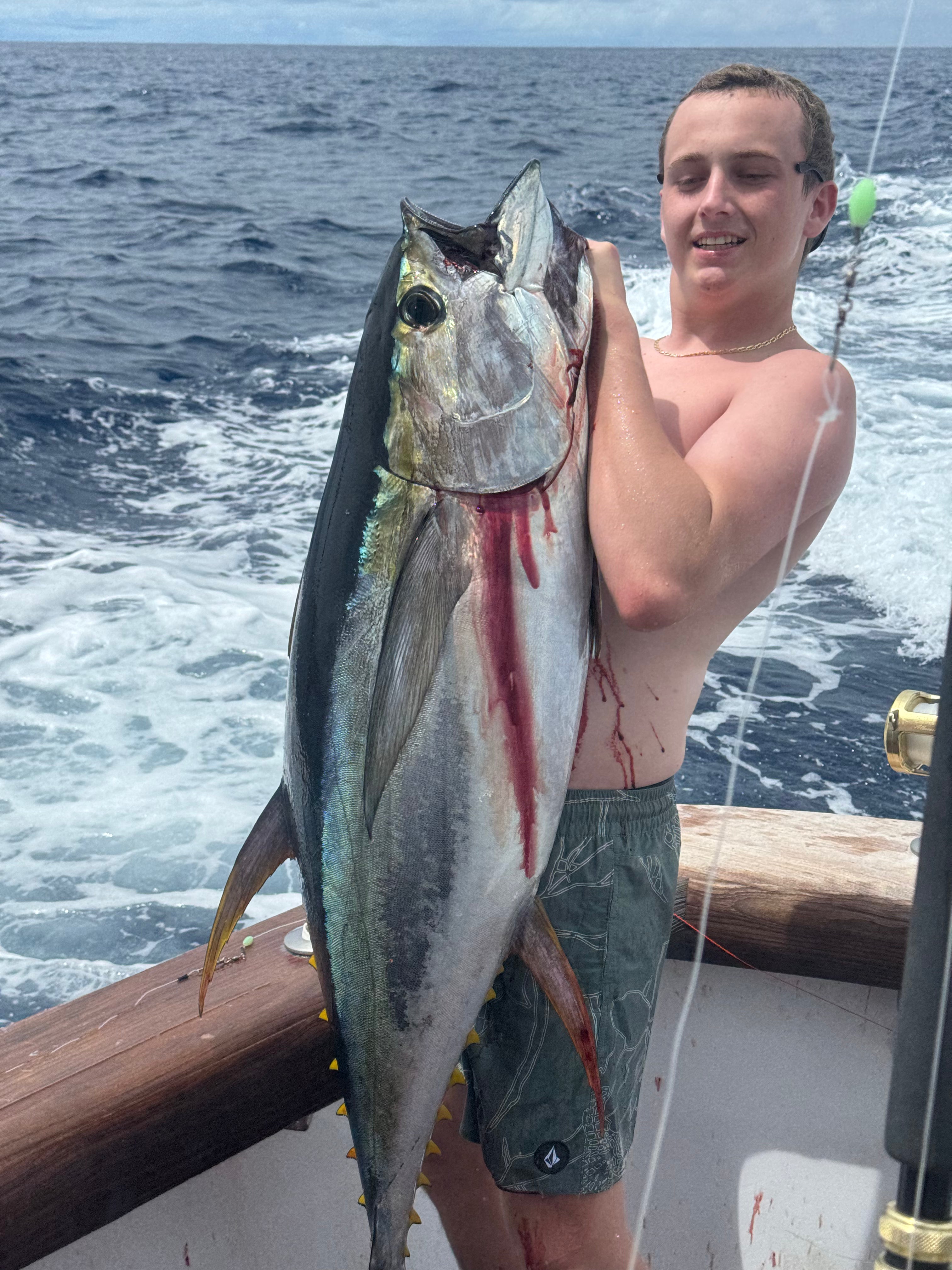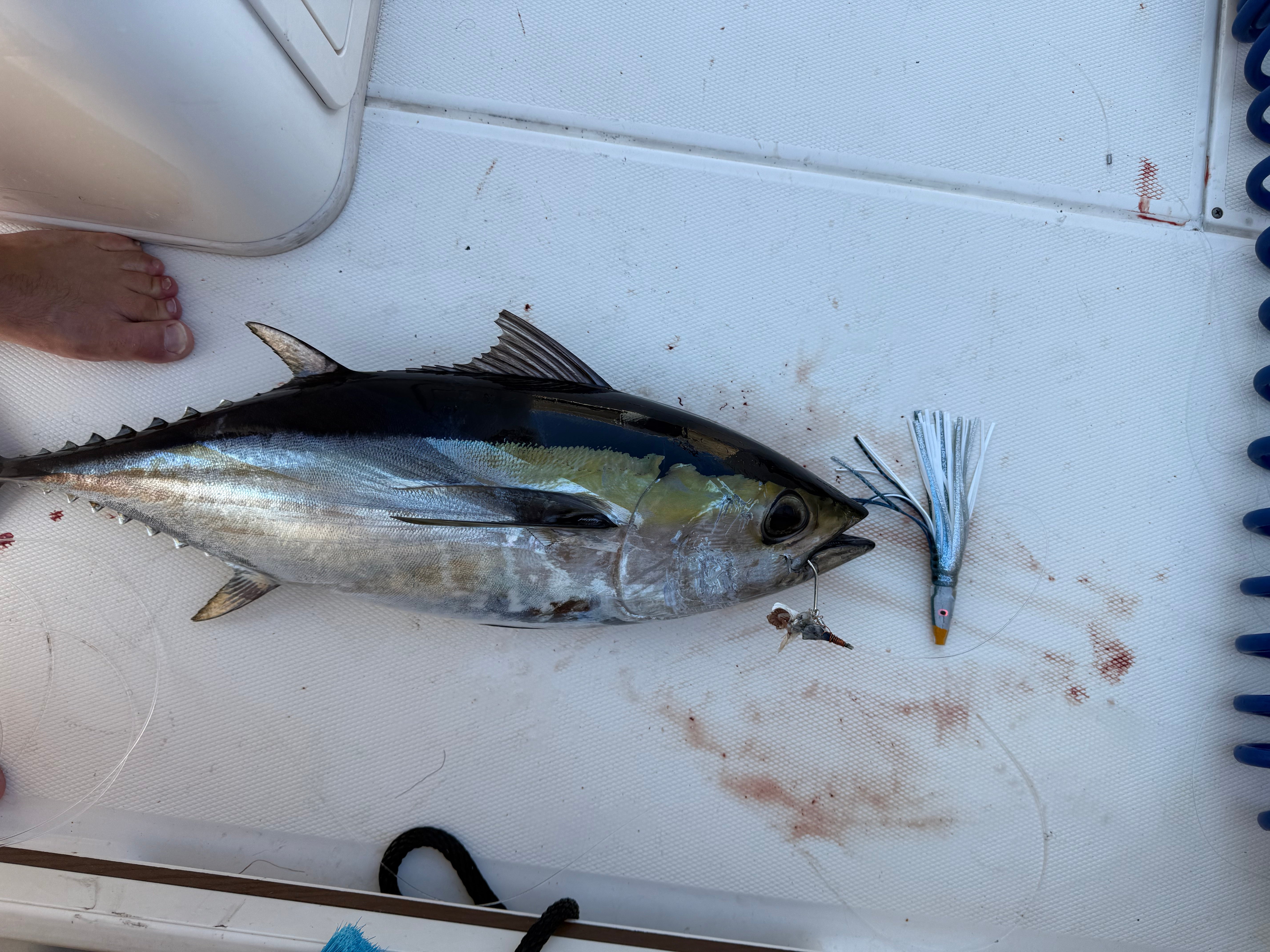 Dark/silhouette colors are always a killer for tuna, and can be seen from long distances even in dirtier water.