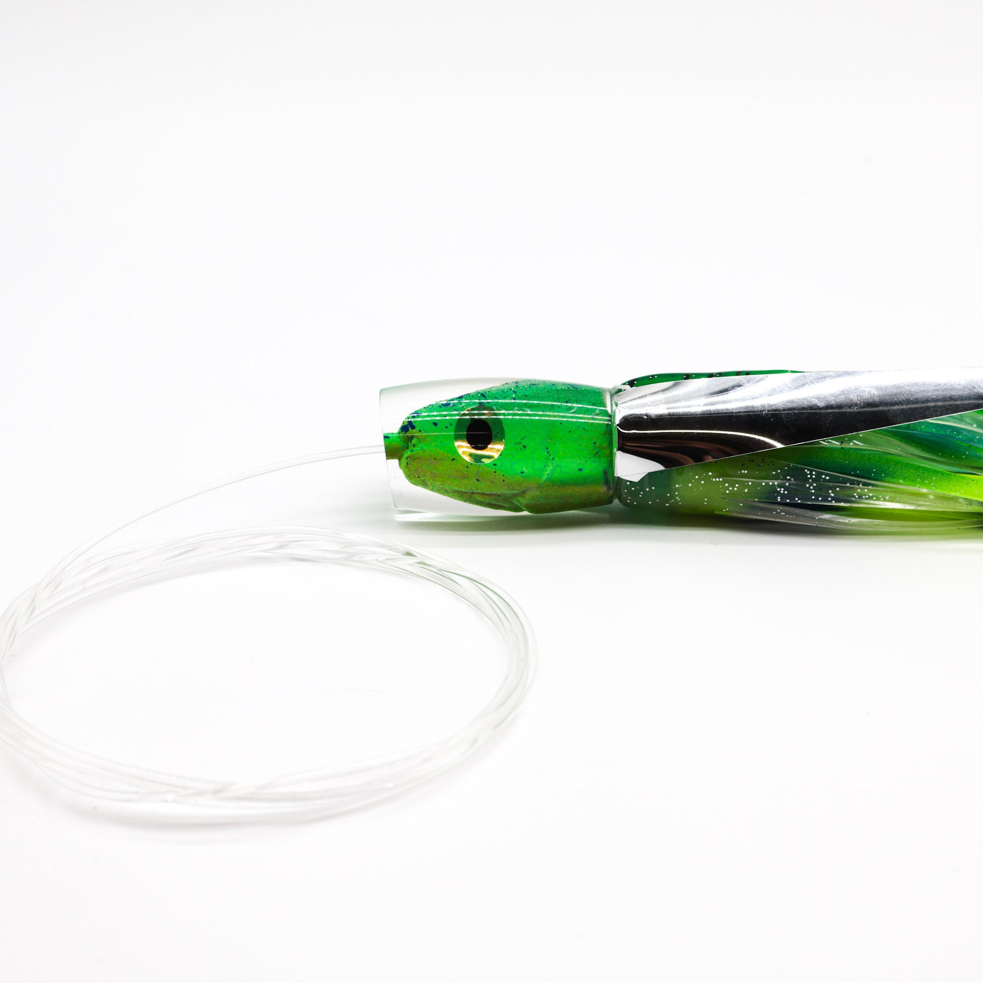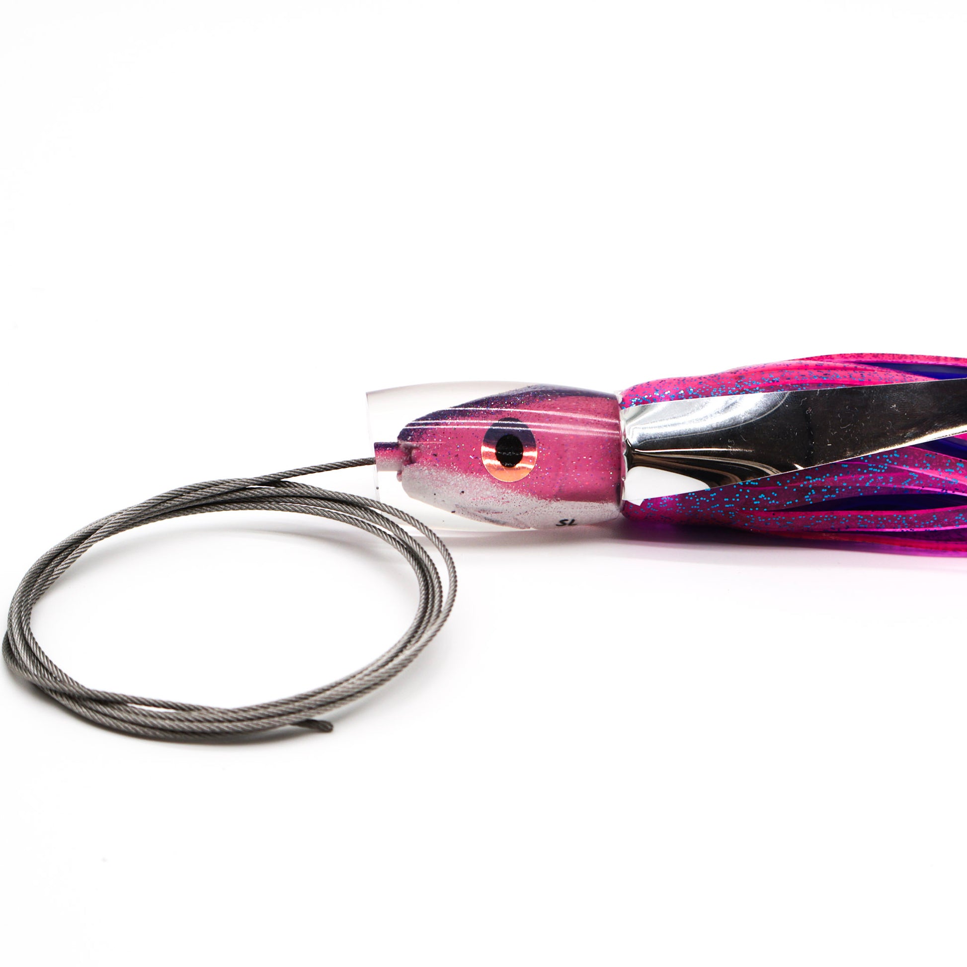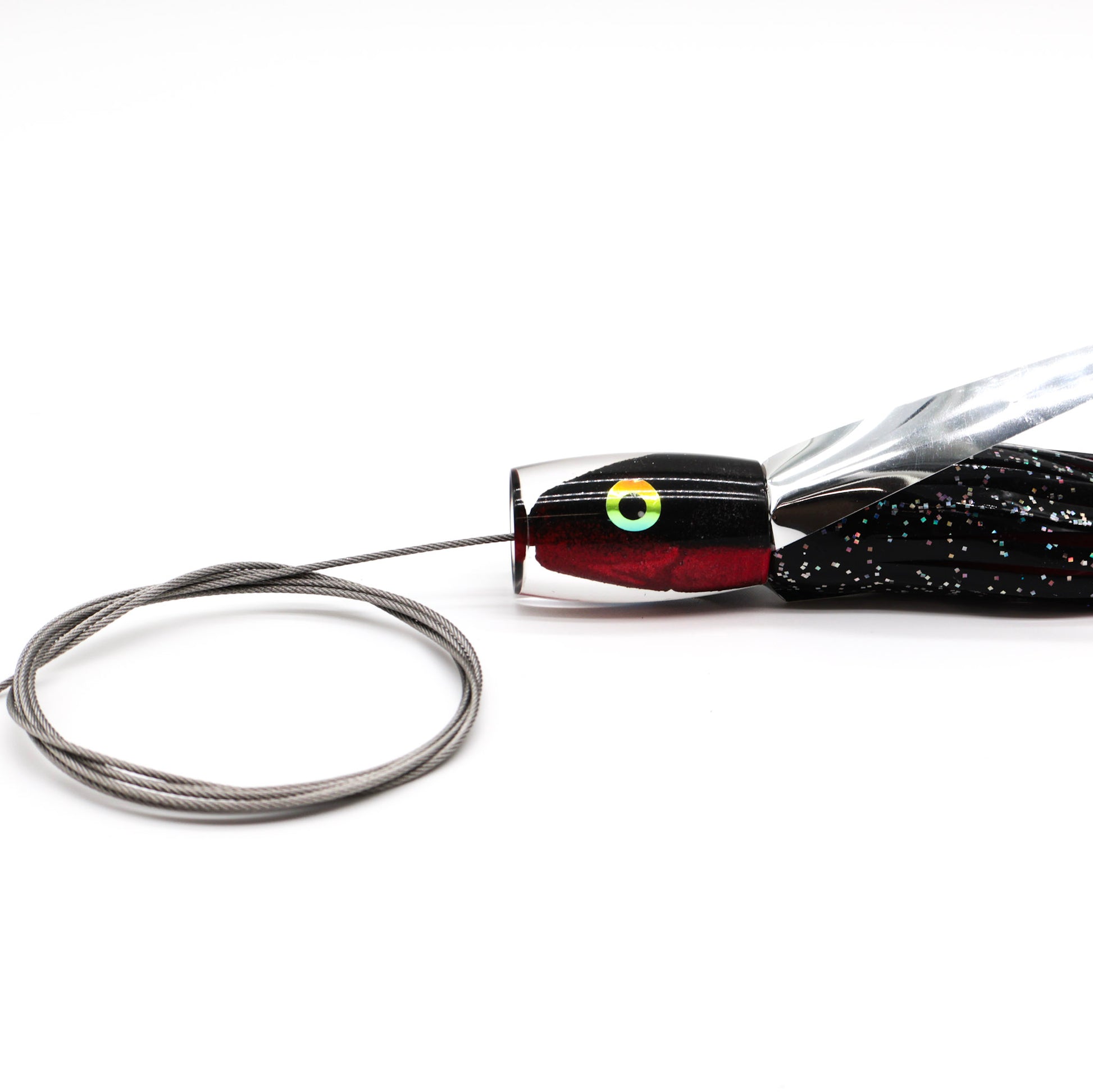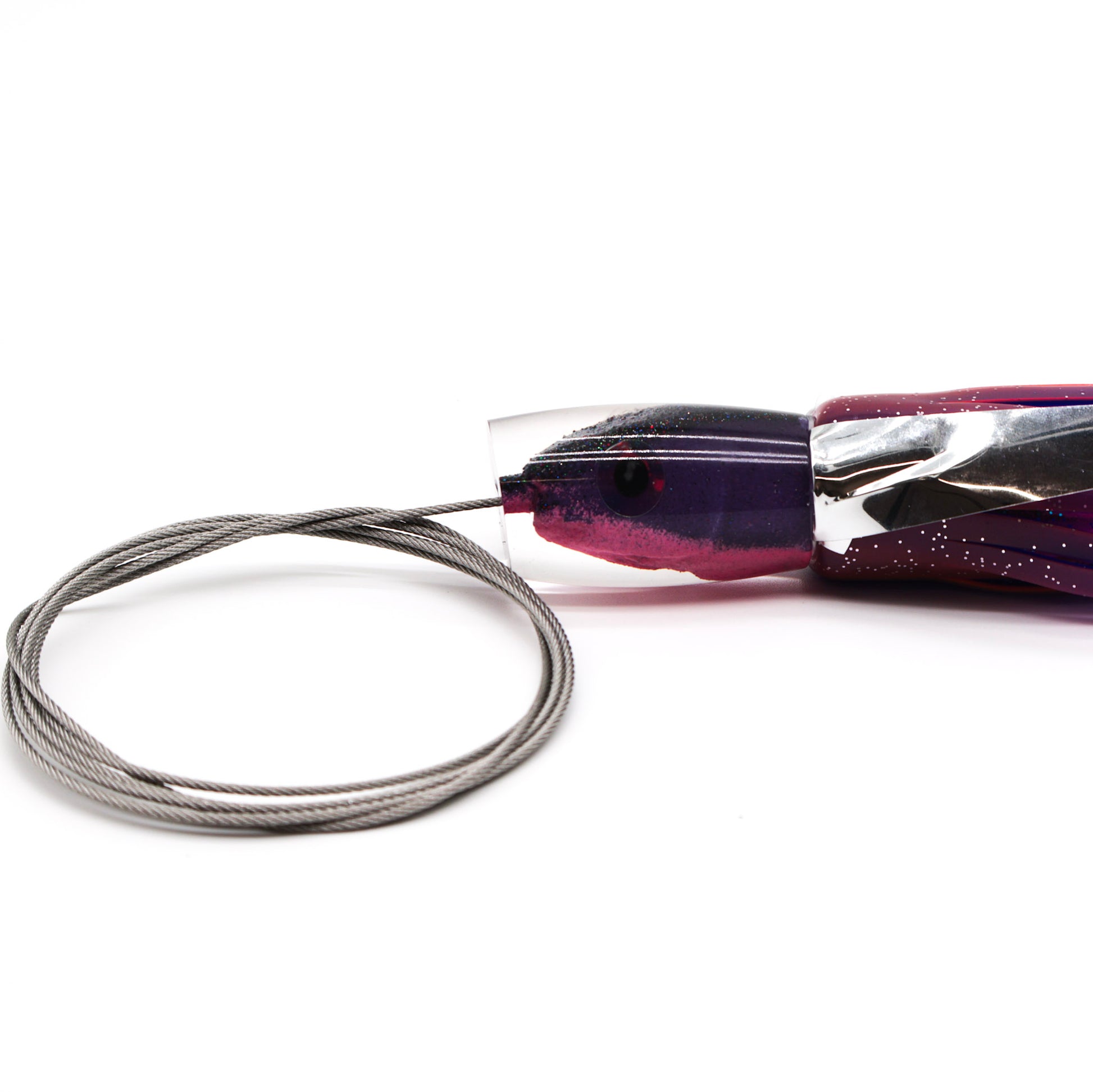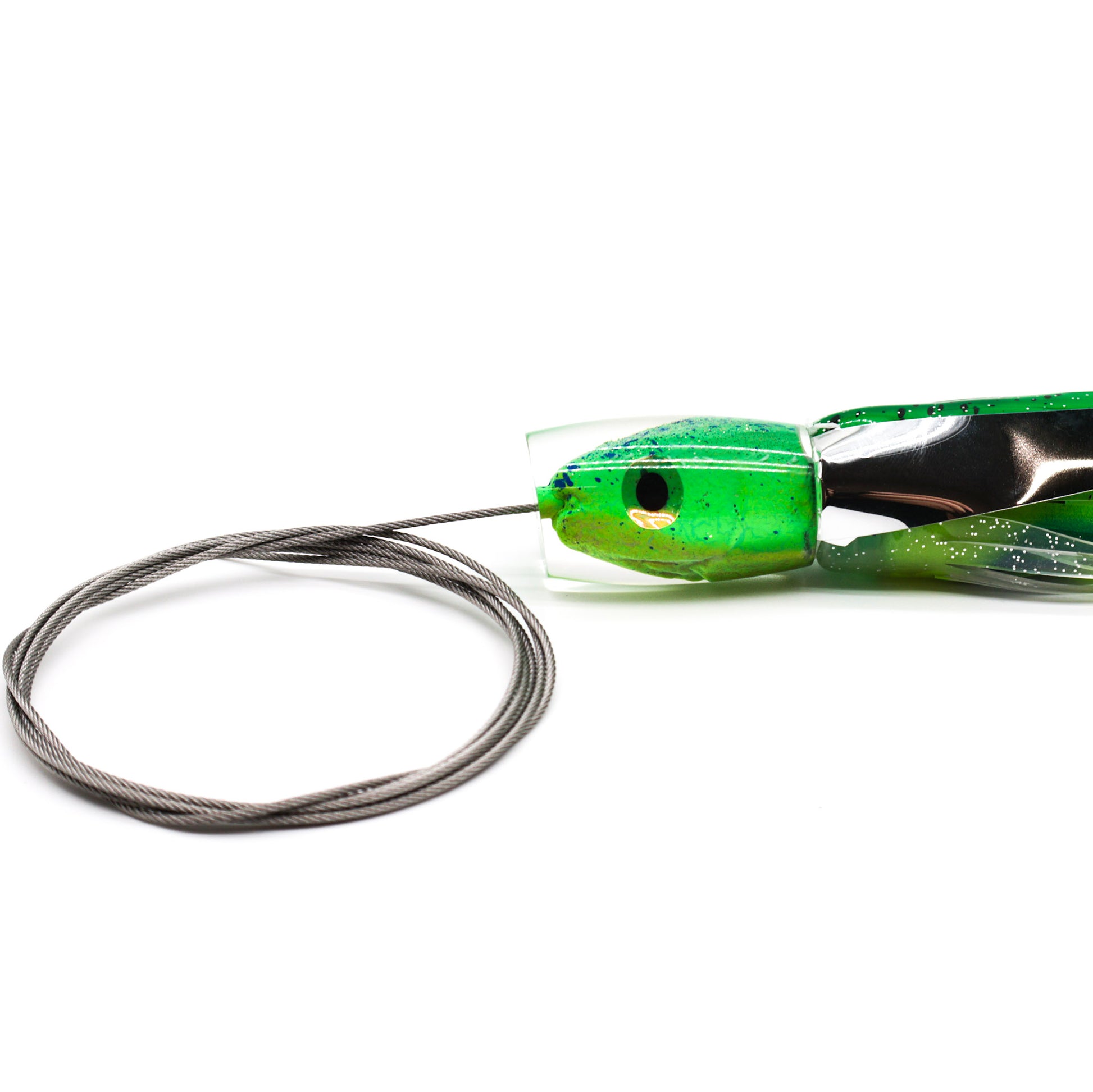 All of our rigs are built in-house using American-made materials. Every lure comes with a cable hook rig for strength and durability, paired with your choice of leader.