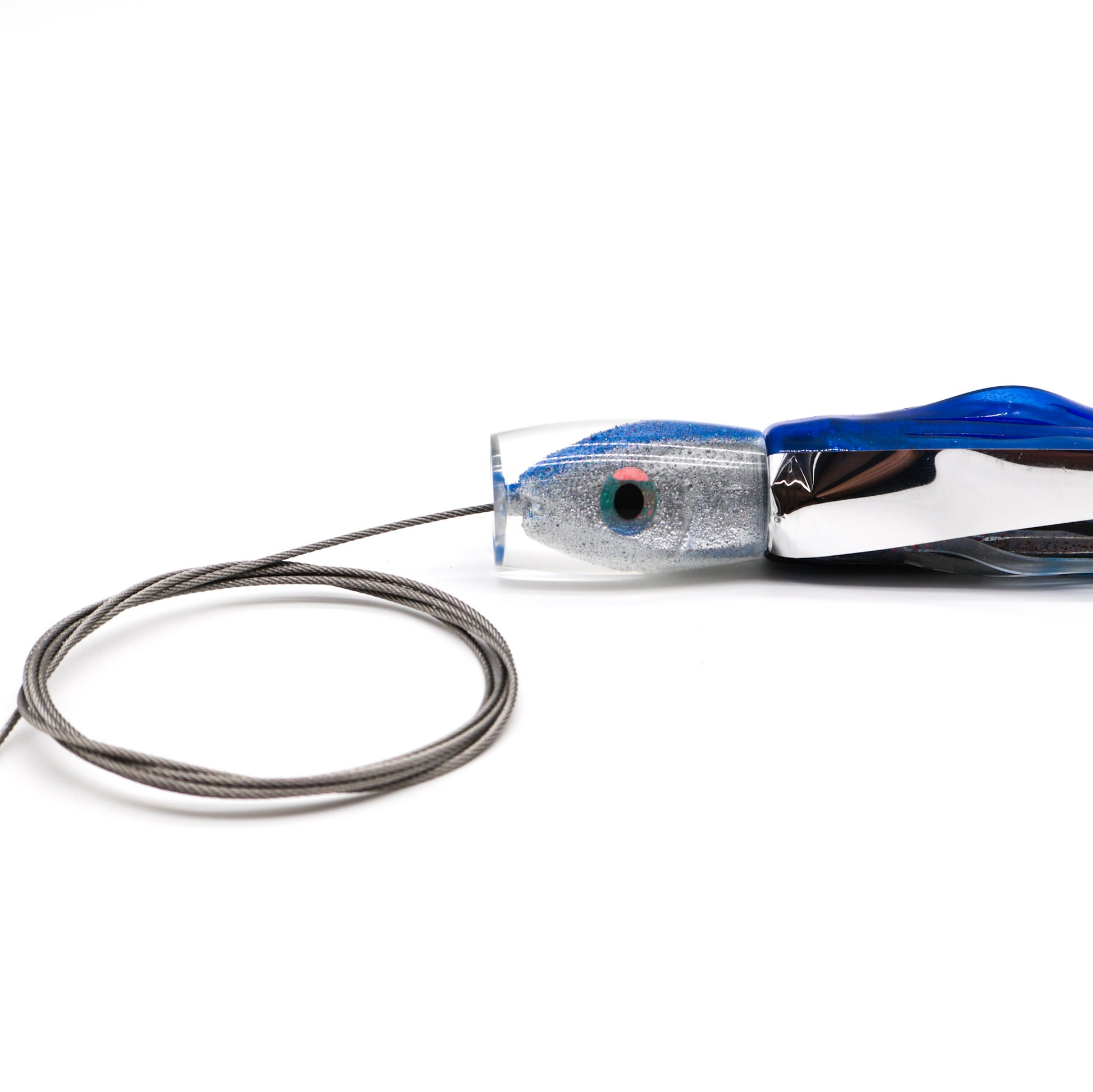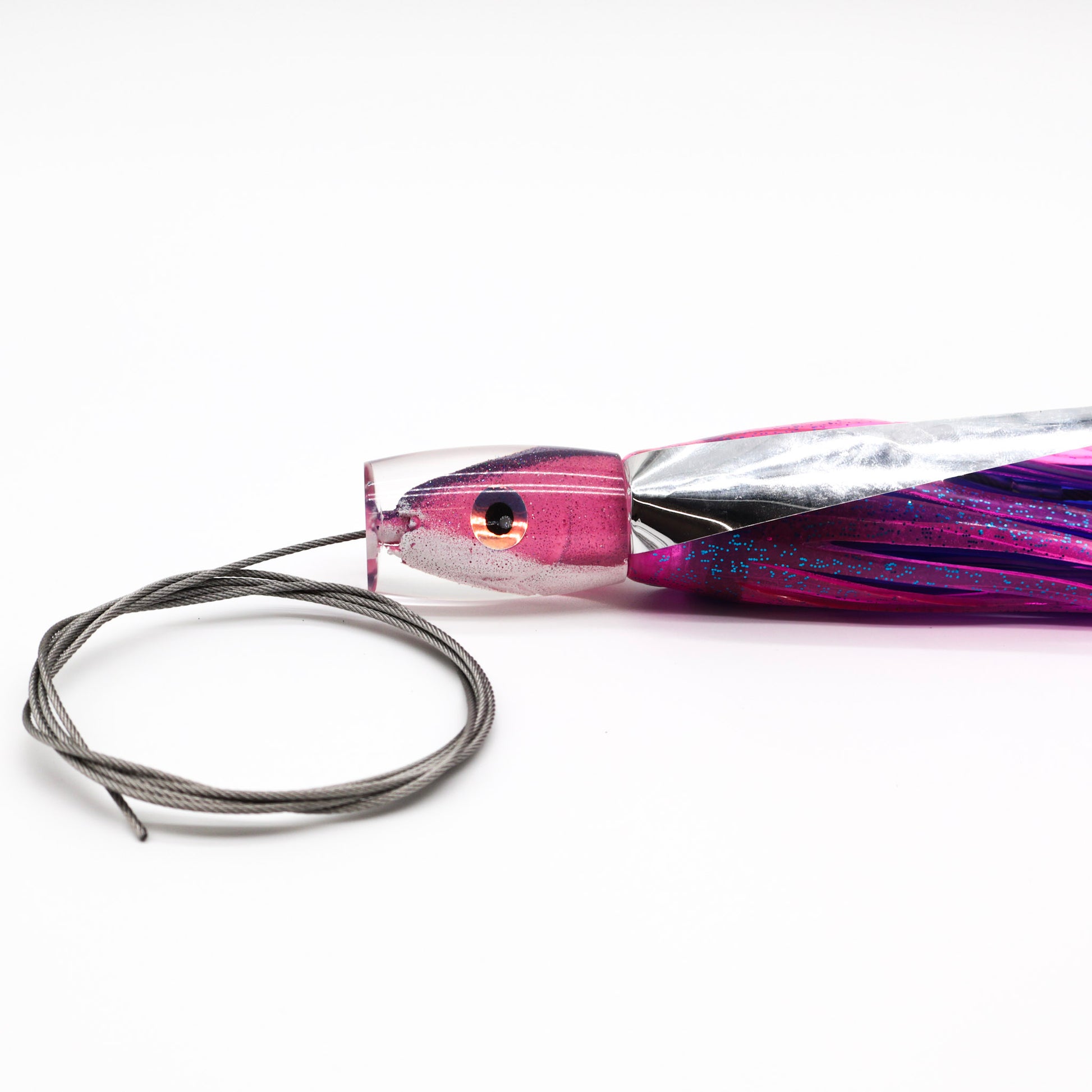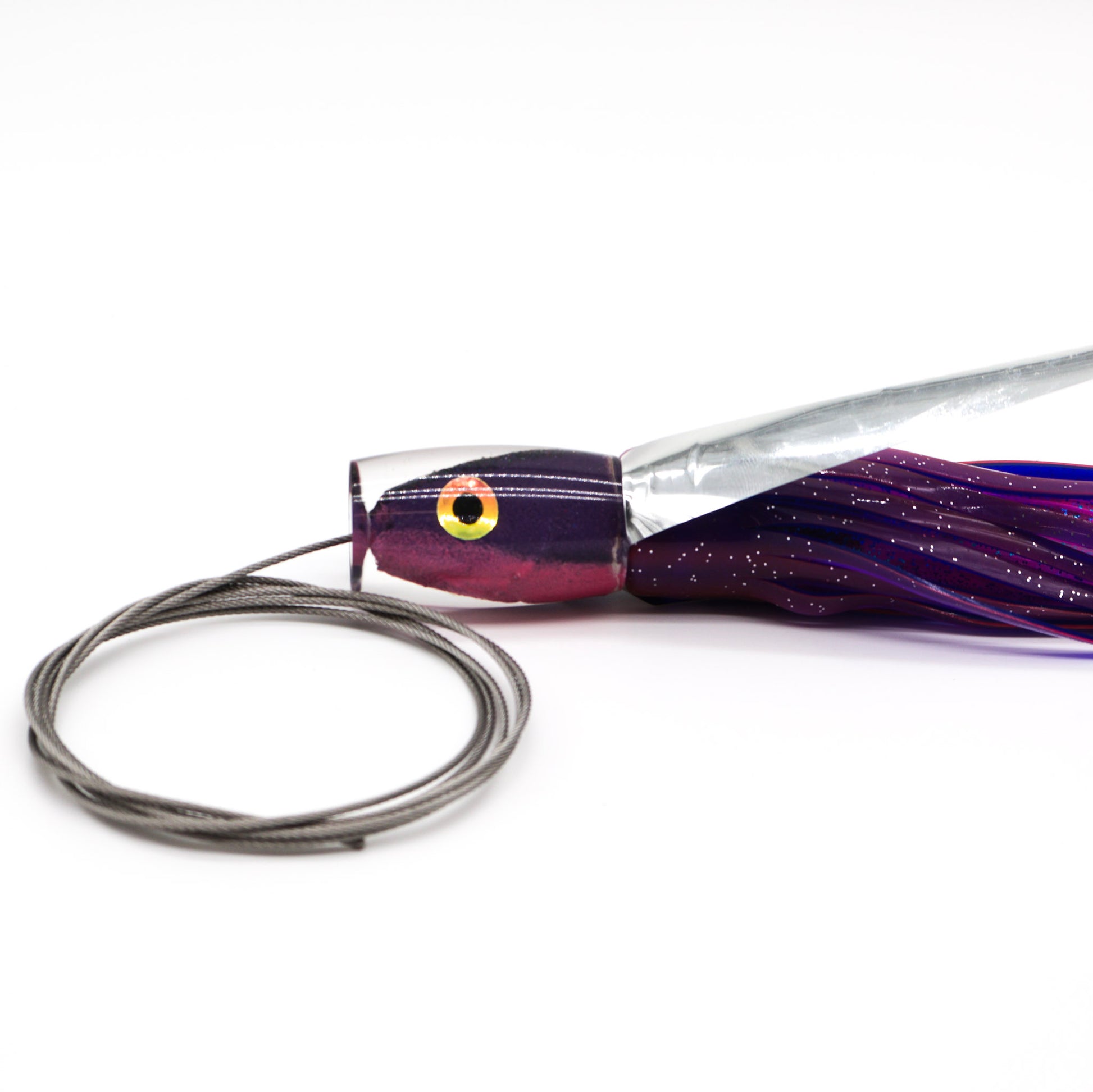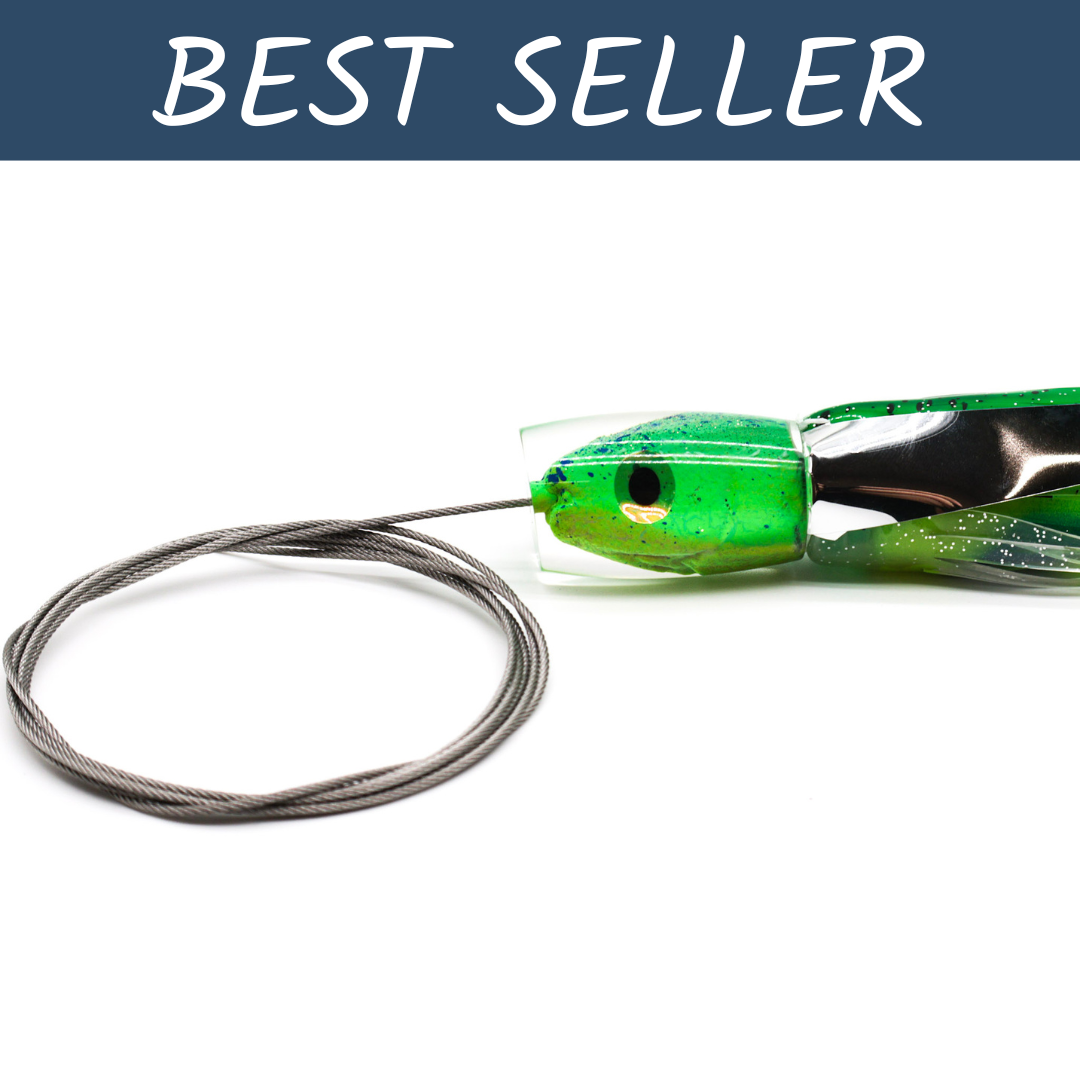 All of our rigs are built in-house using American-made materials. Every lure comes with a cable hook rig for strength and durability, paired with your choice of leader.
