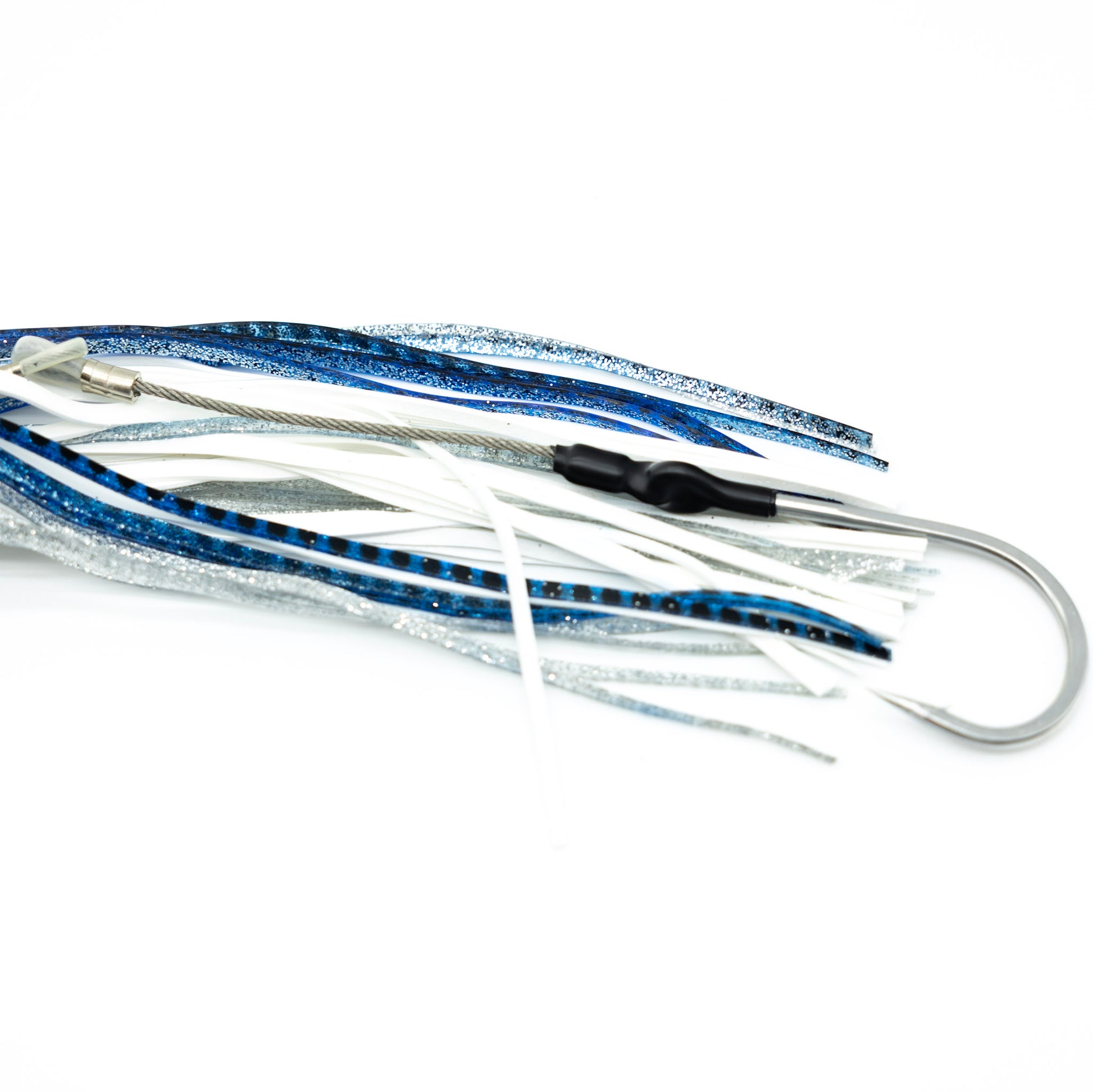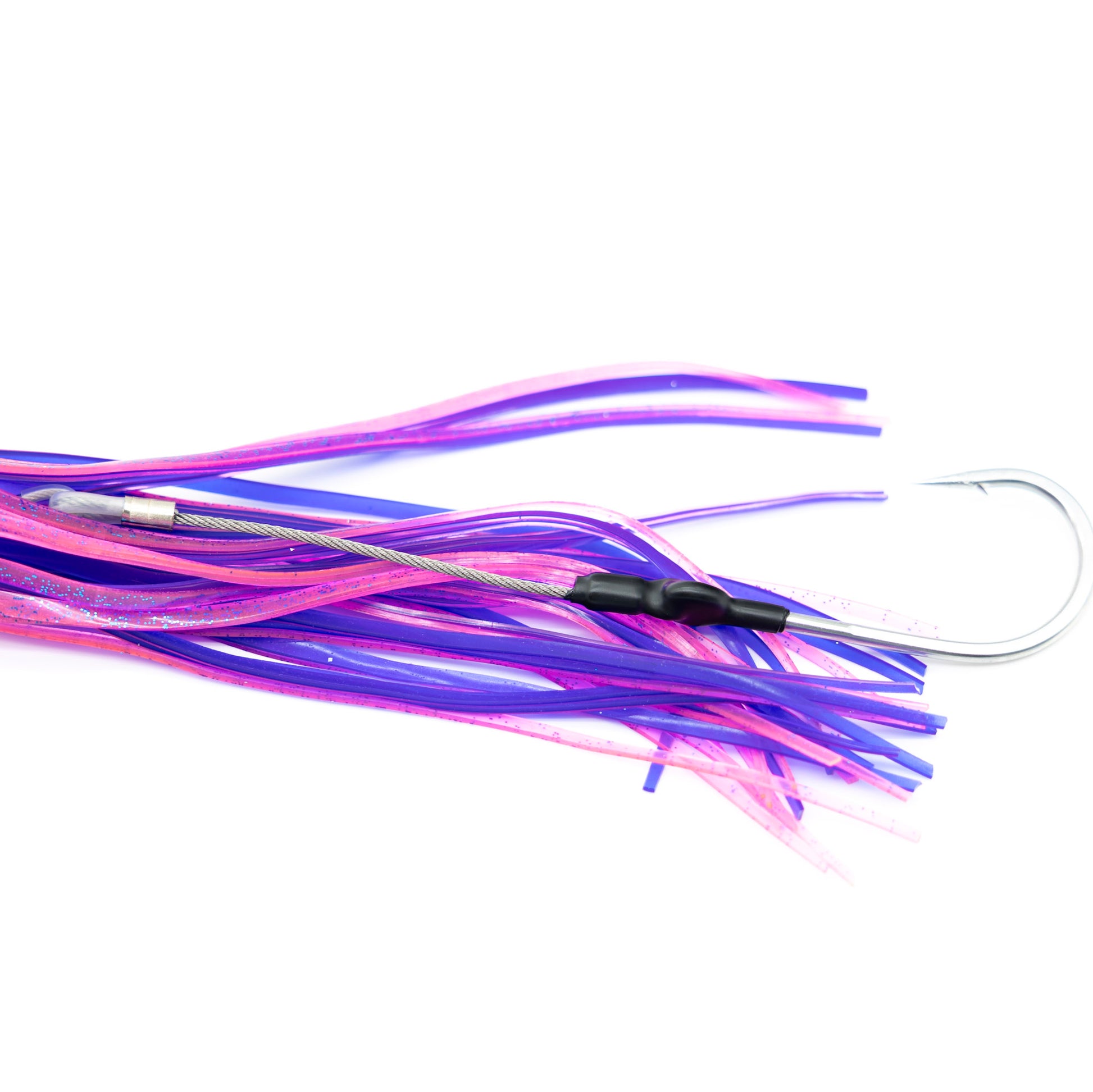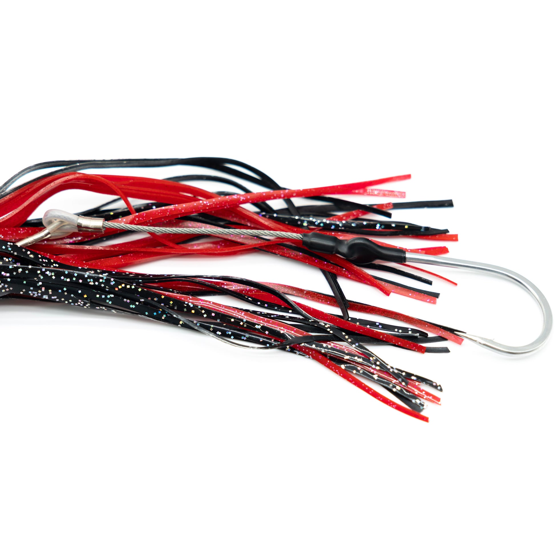 All of our rigs are built in-house using American-made materials. Every lure comes with a cable hook rig for strength and durability, paired with your choice of leader.