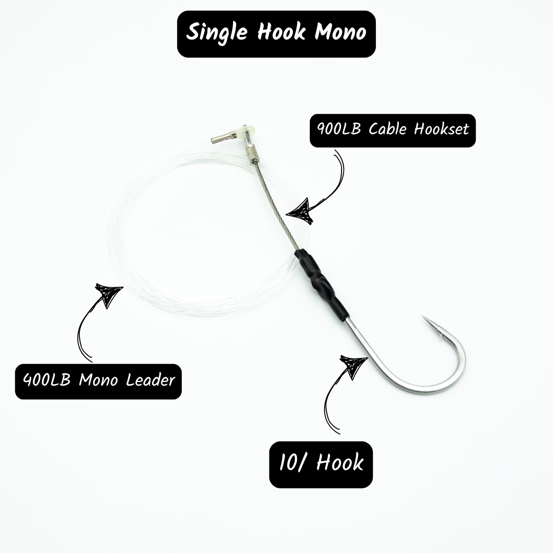 Rigging solved. Choose mono or cable, and we’ll build it right with heavy-duty hooks and proven hardware. No crimping, no guessing — just open the bag and start fishing.