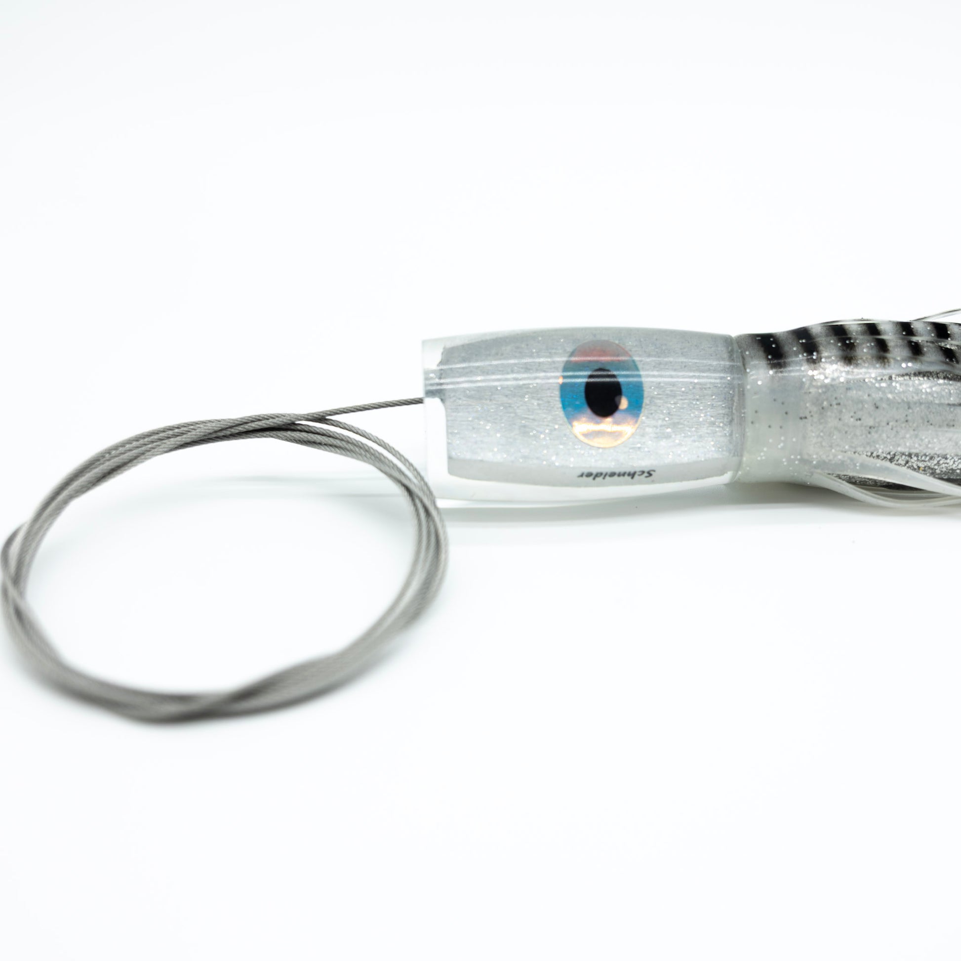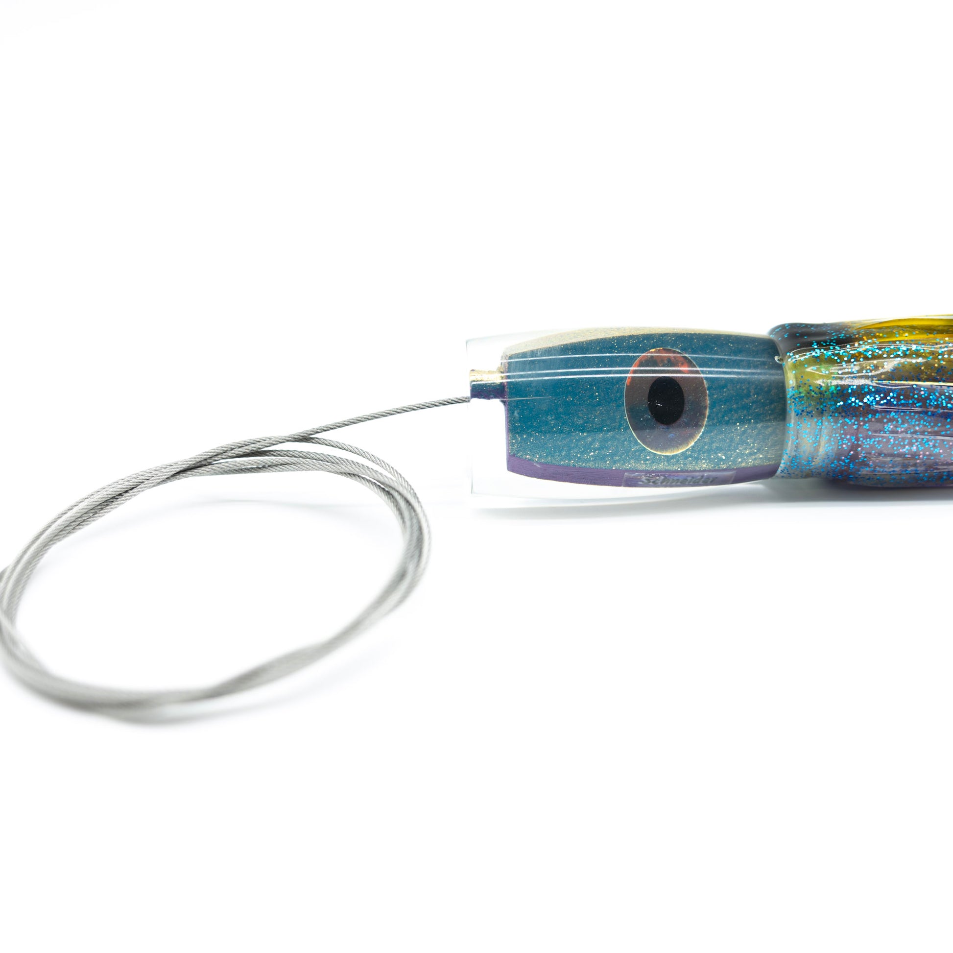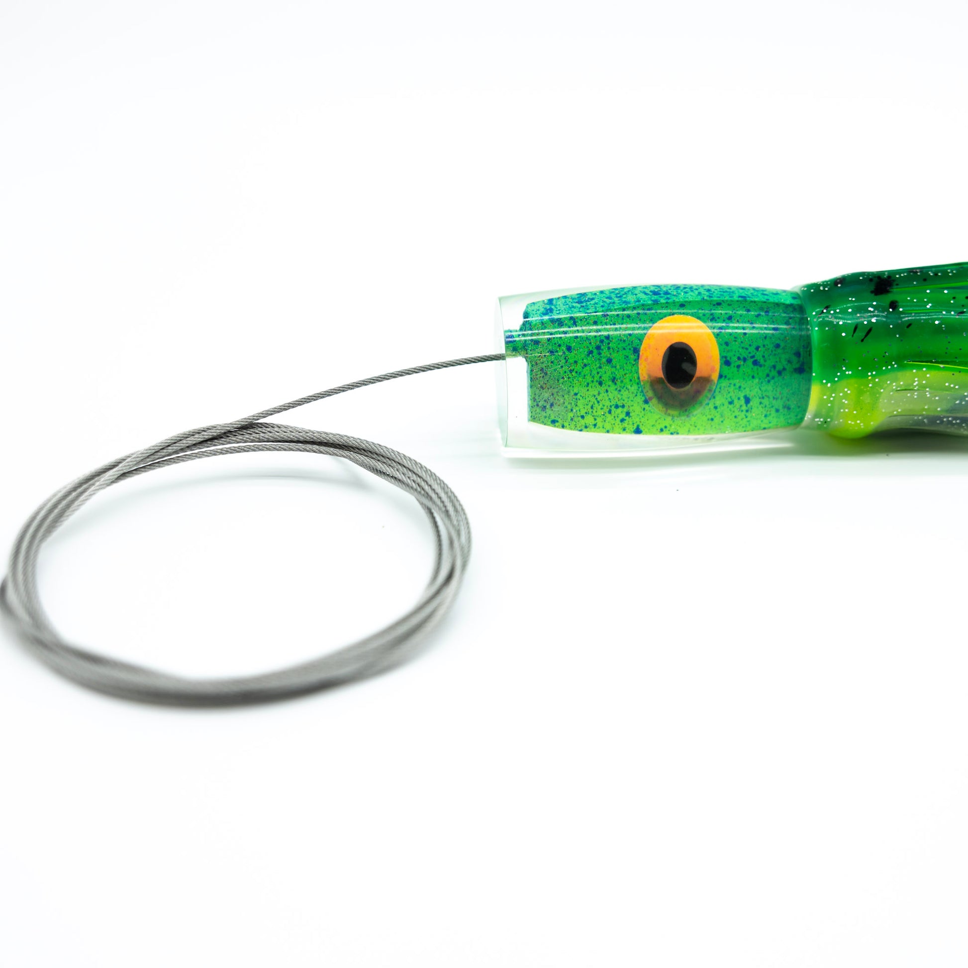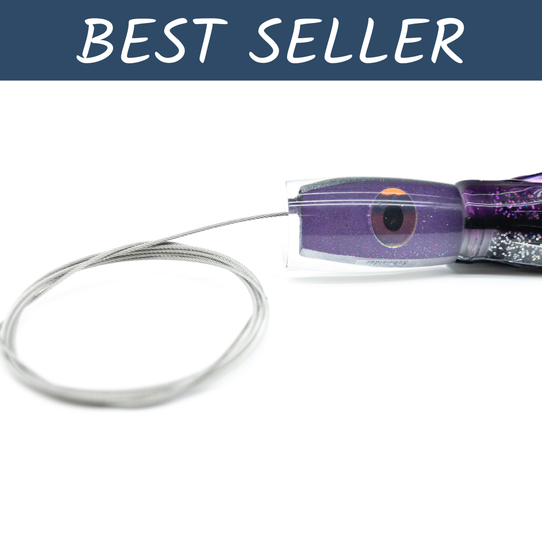 All of our rigs are built in-house using American-made materials. Every lure comes with a cable hook rig for strength and durability, paired with your choice of leader.
