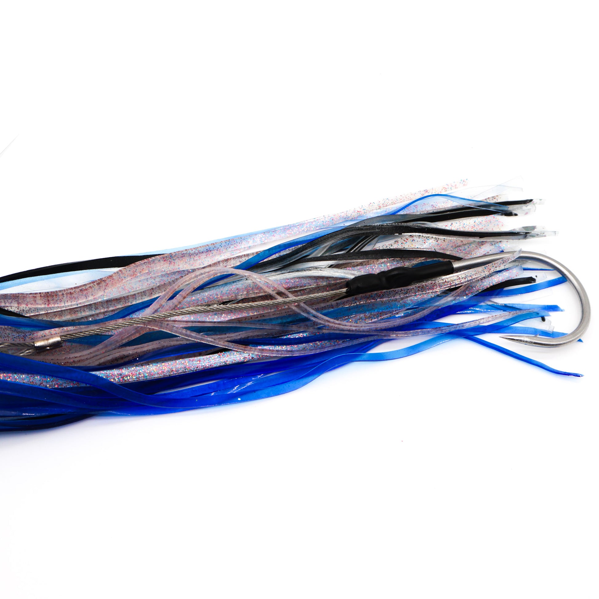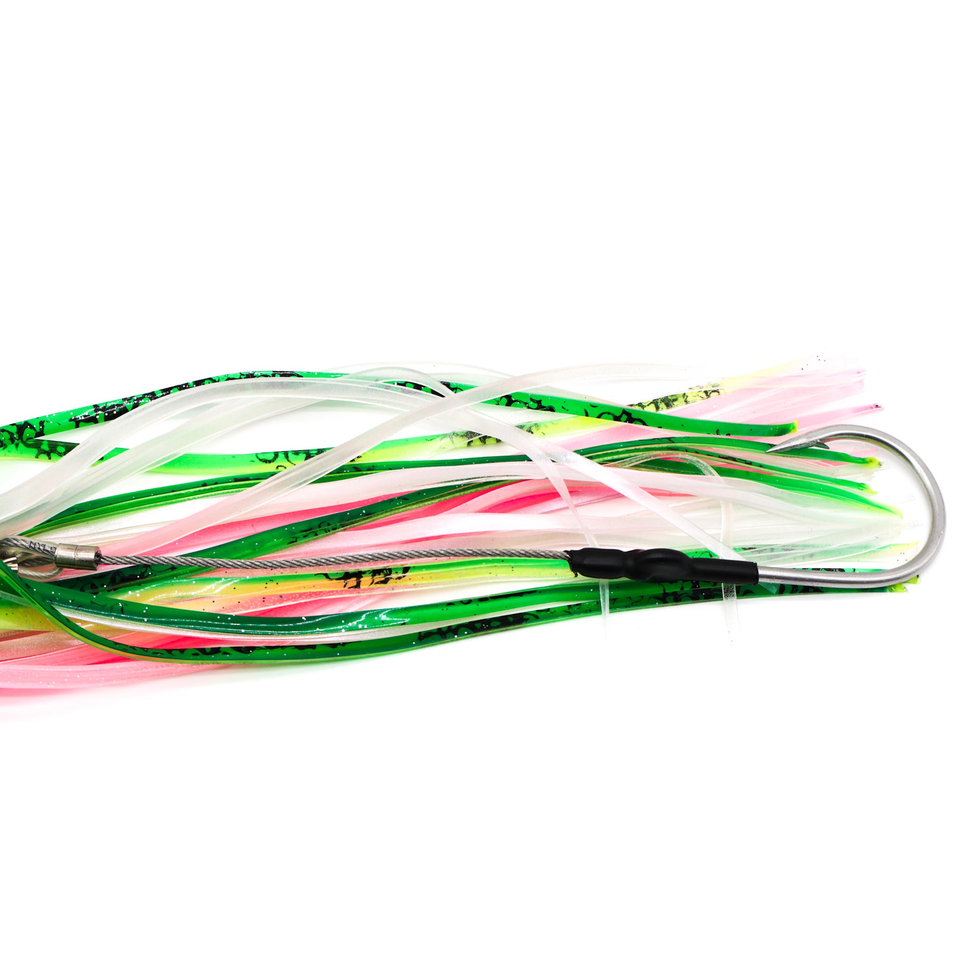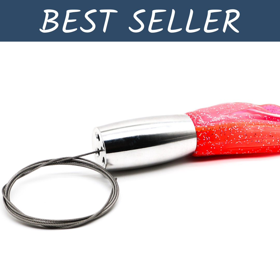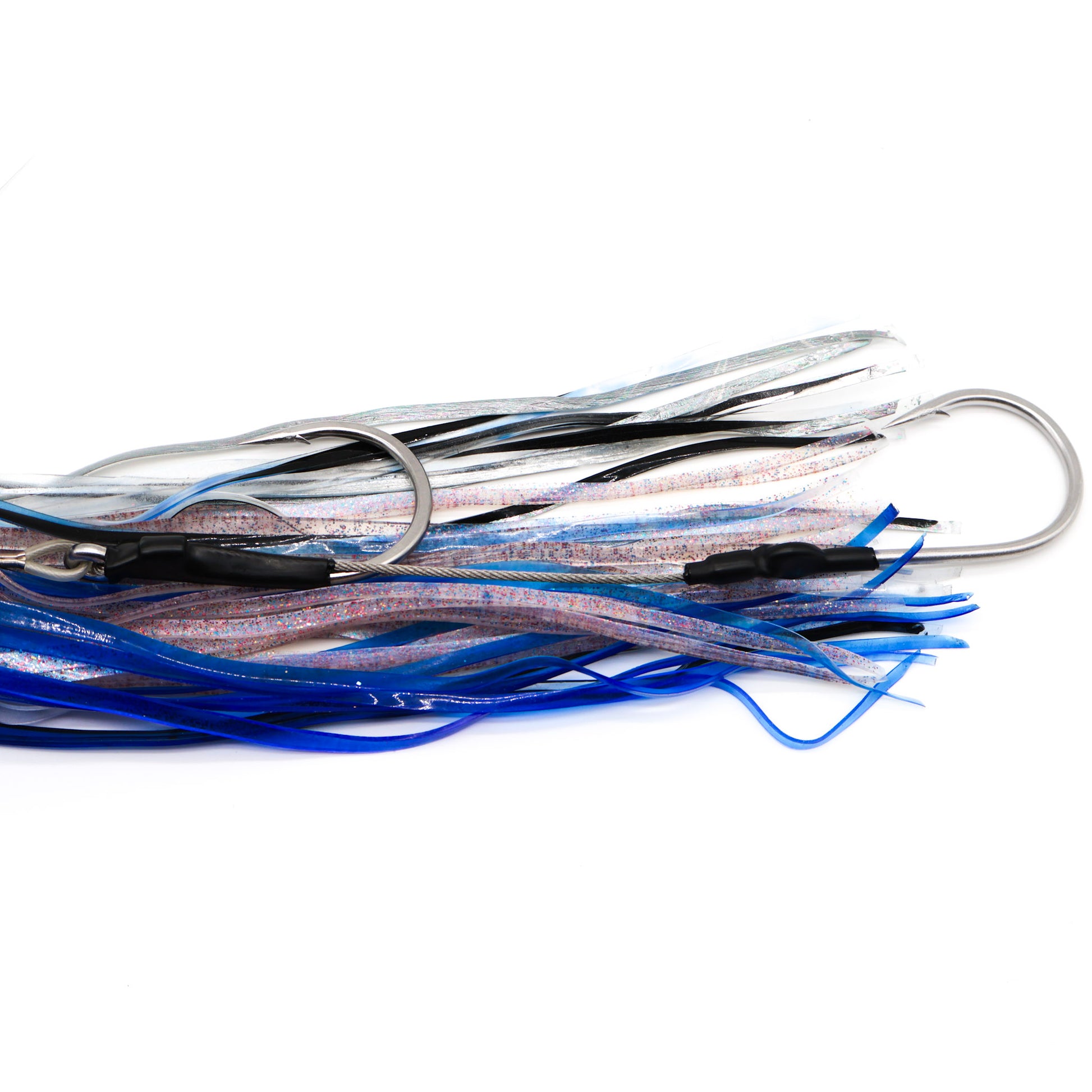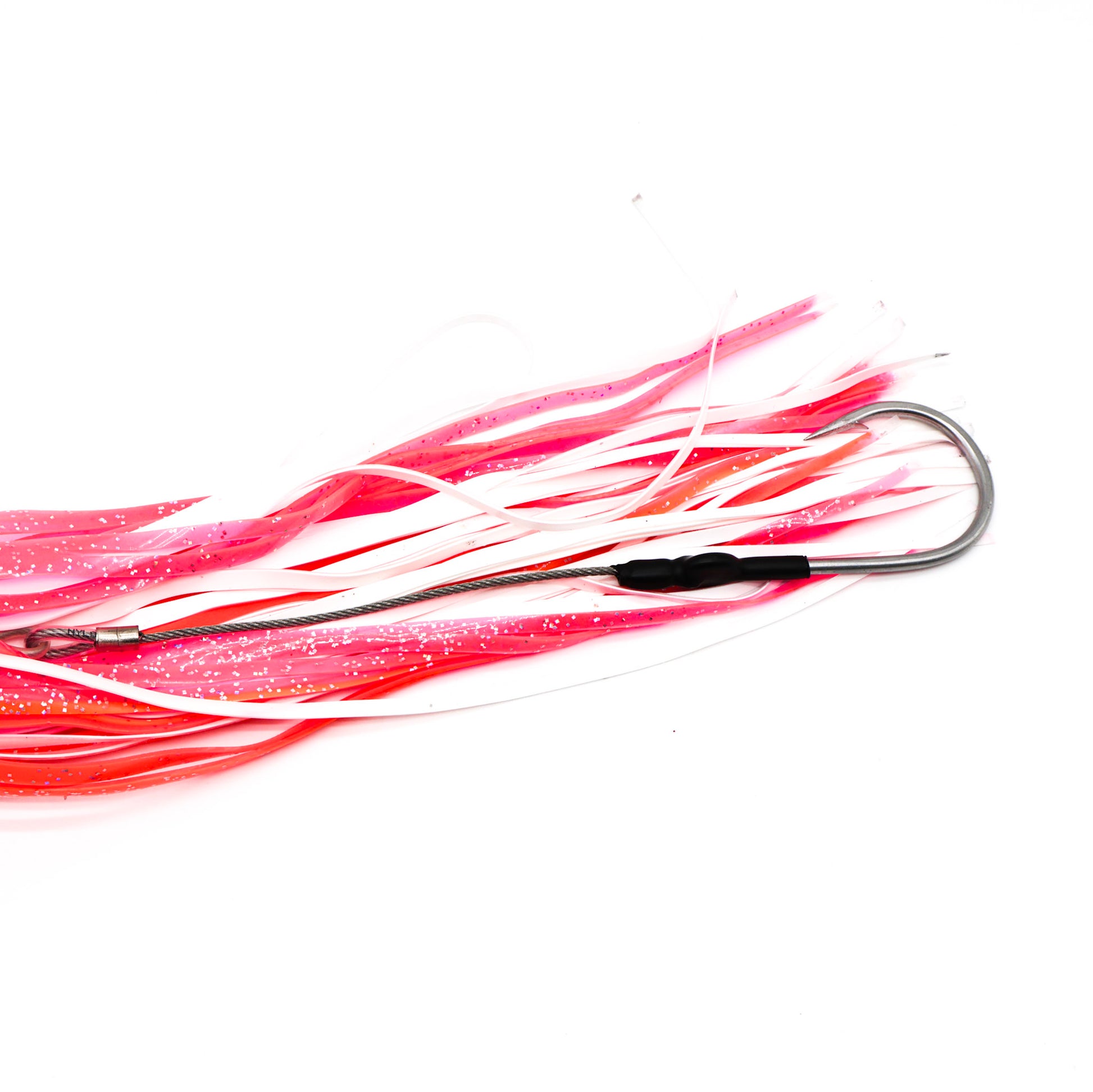 All of our rigs are built in-house using American-made materials. Every lure comes with a cable hook rig for strength and durability, paired with your choice of leader.