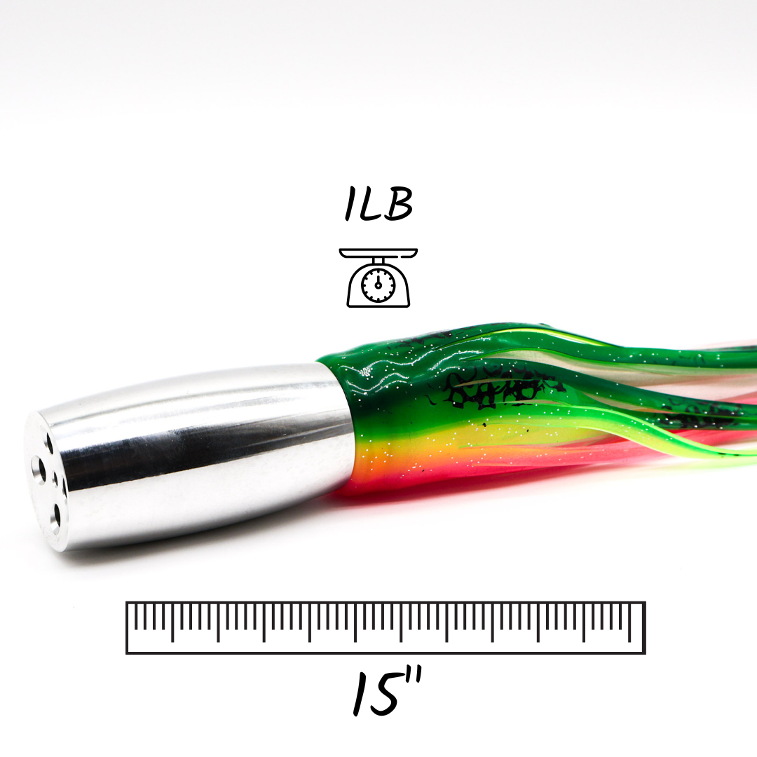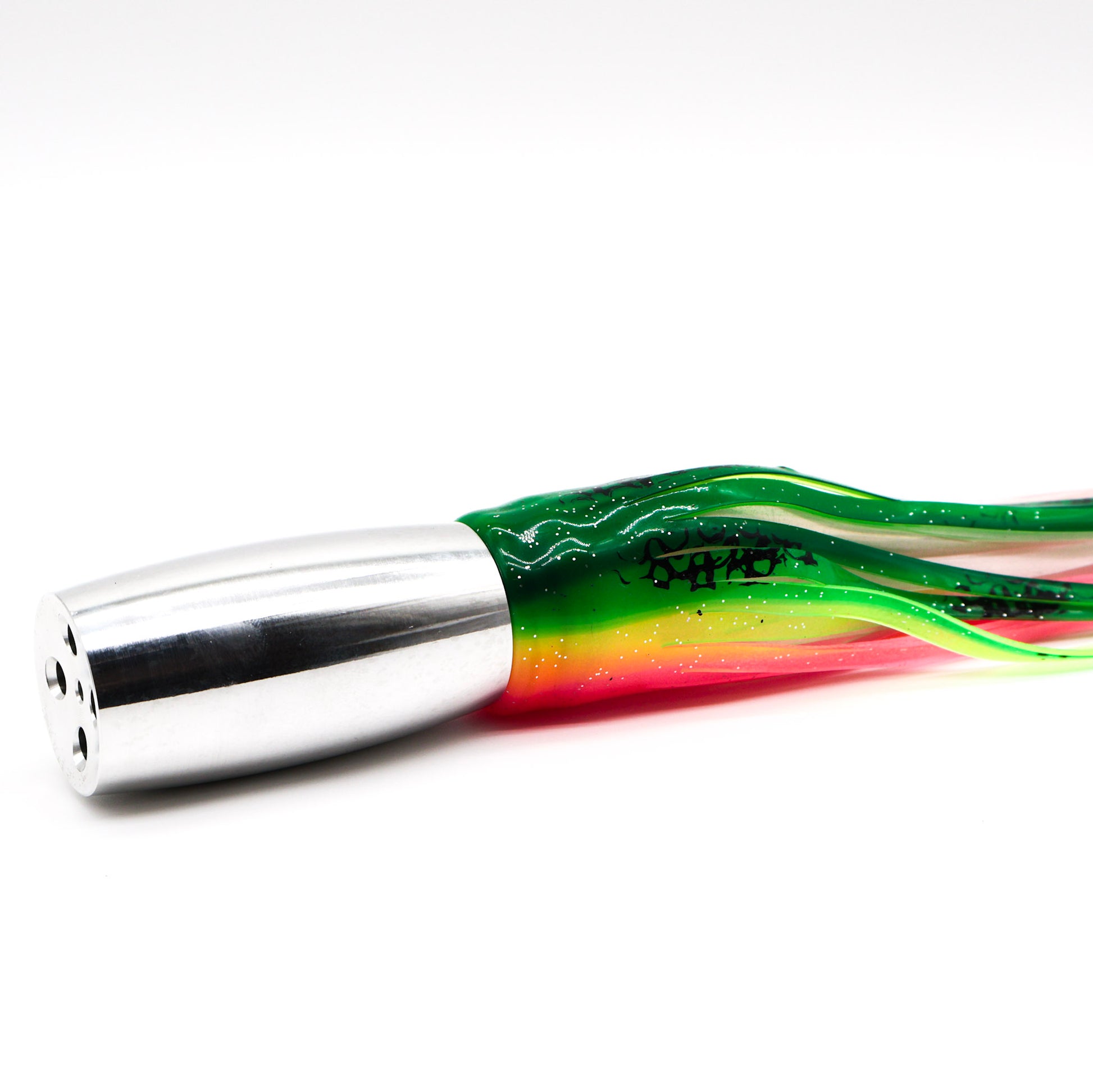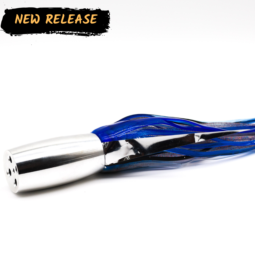 CNC-milled aluminum head with 4 jets and a cupped face. A versatile high-speed lure that can be fished in any position and built to withstand brutal wahoo strikes.