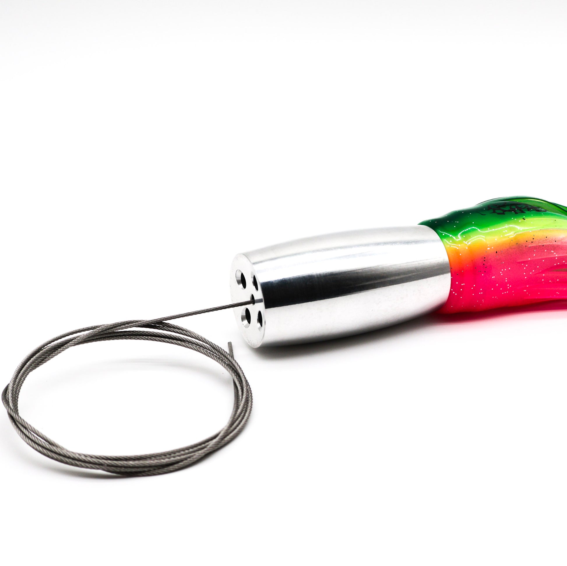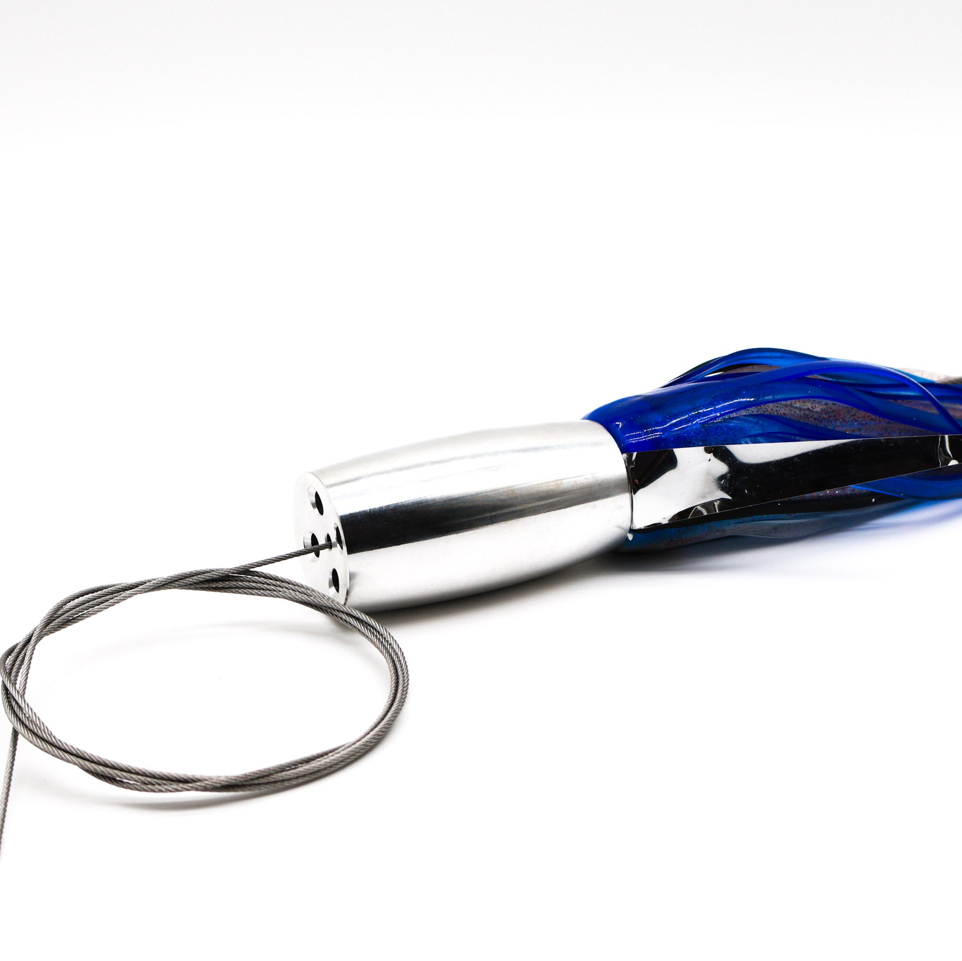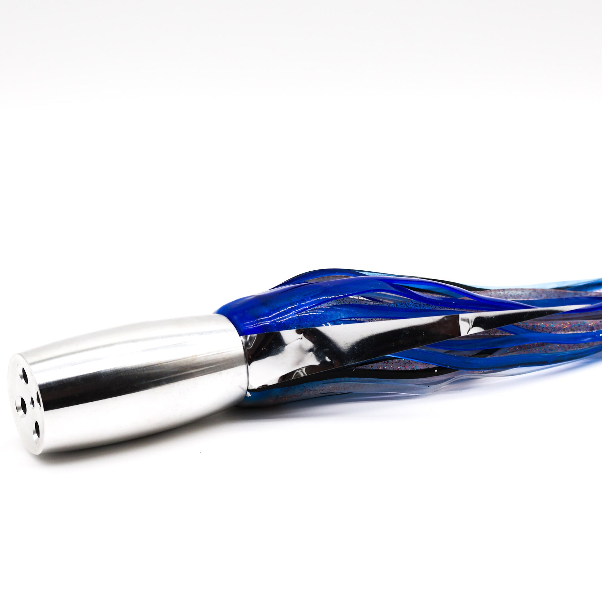 CNC-milled raw aluminum head with 4 jets and a cupped face. A versatile high-speed lure that can be fished in any position and built to withstand brutal wahoo strikes.
