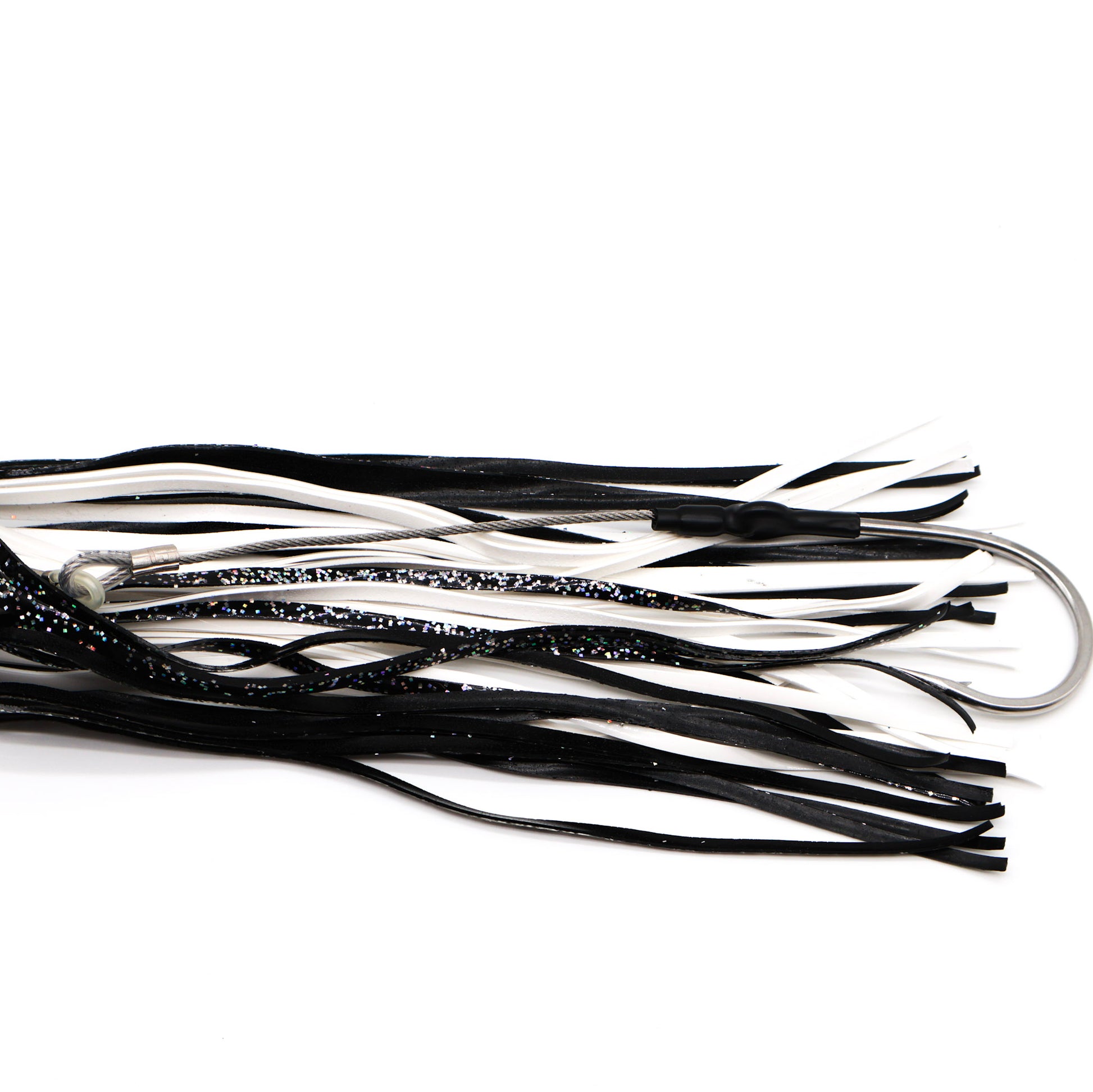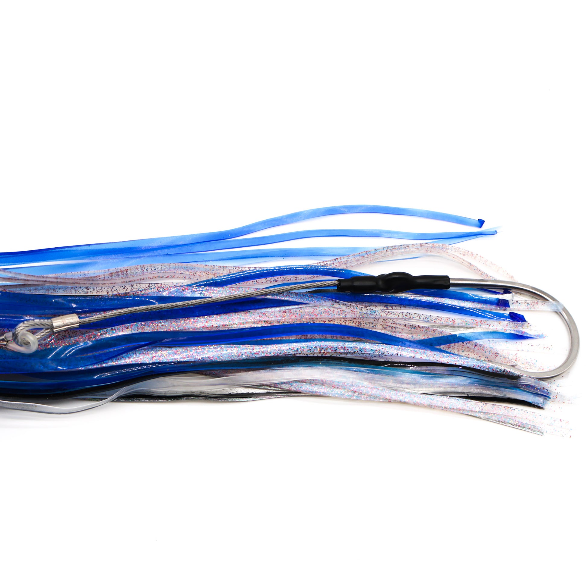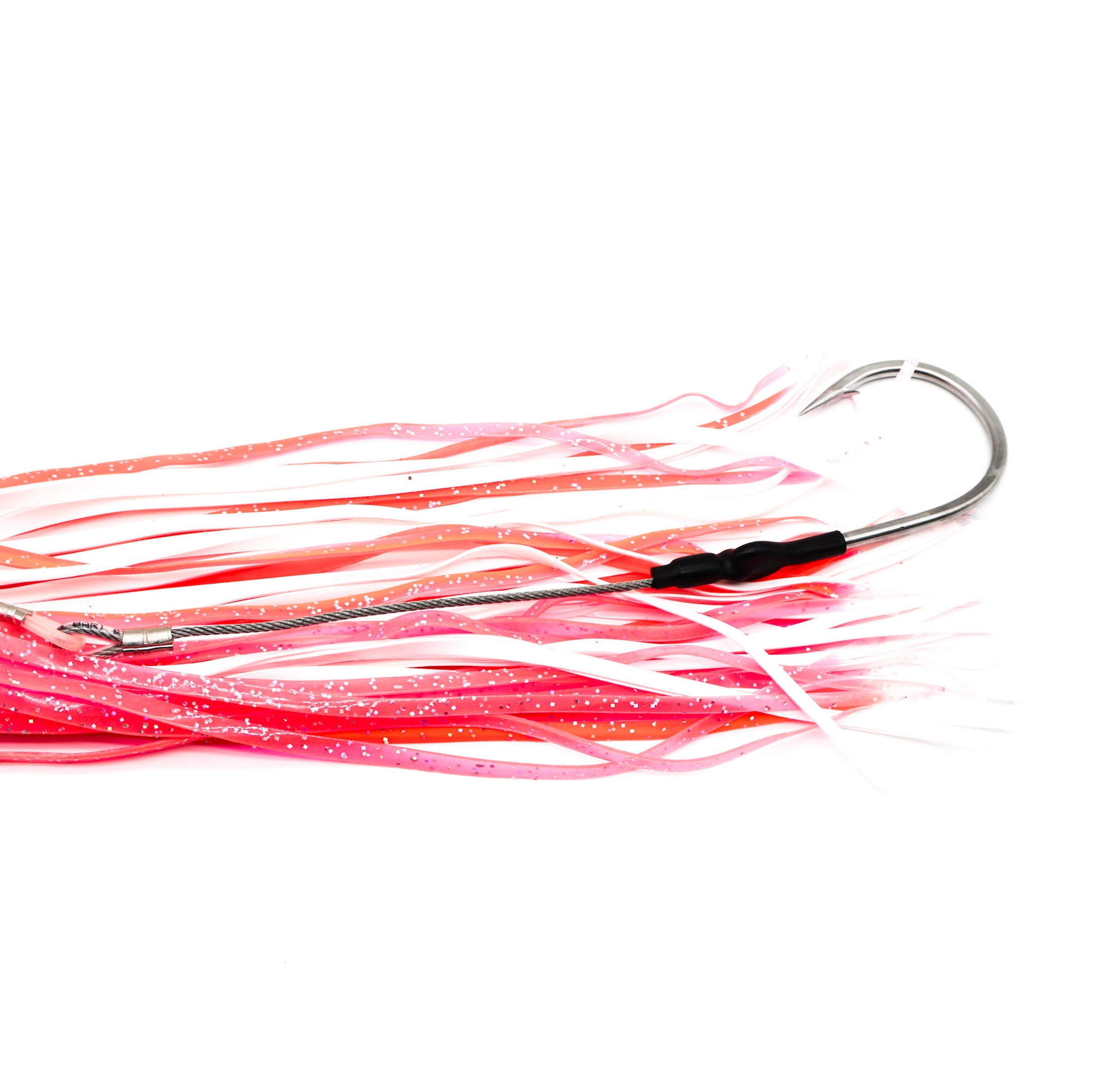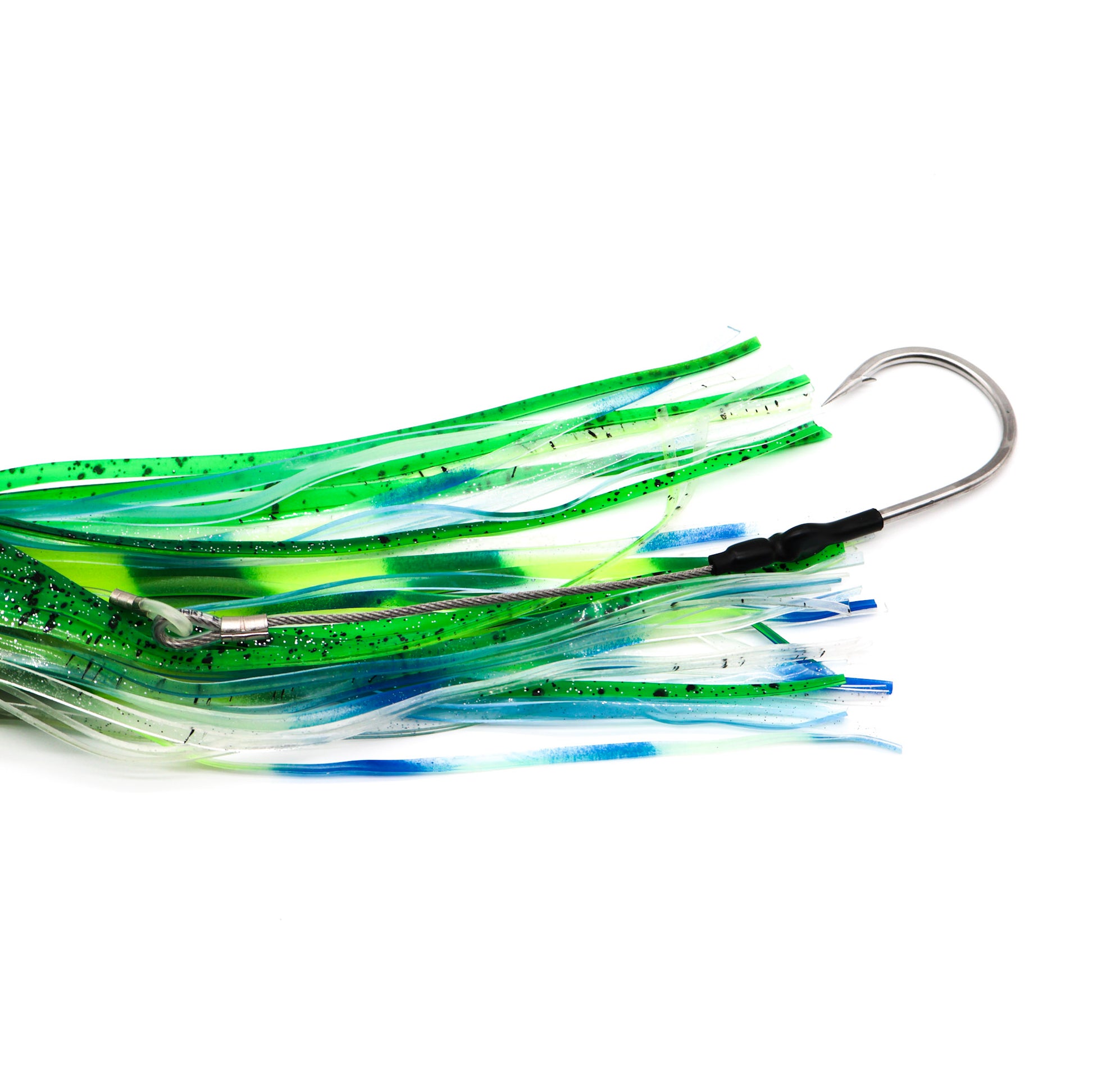 All of our rigs are built in-house using American-made materials. Every lure comes with a cable hook rig for strength and durability, paired with your choice of leader.
