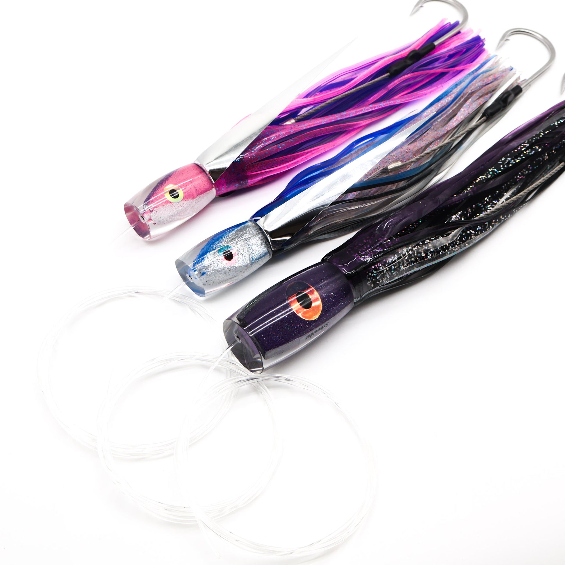 Three everyday marlin lures with the ability to attract any large pelagic that crosses their path. Includes one lure from each of our 11" series and one 13" Yap.