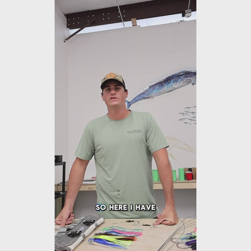 All of our rigs are built in-house using American-made materials. Every lure comes with a cable hook rig for strength and durability, paired with your choice of leader.