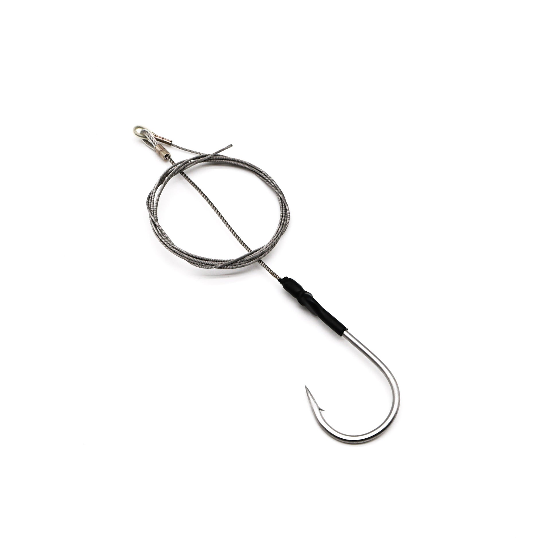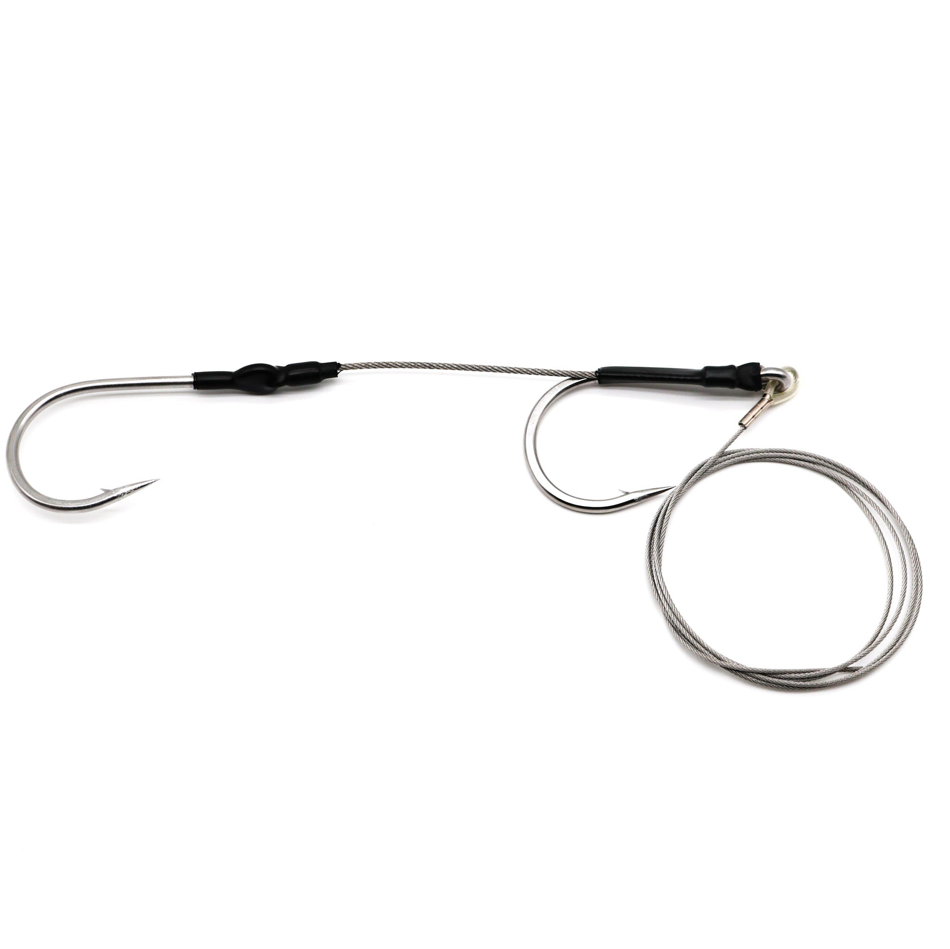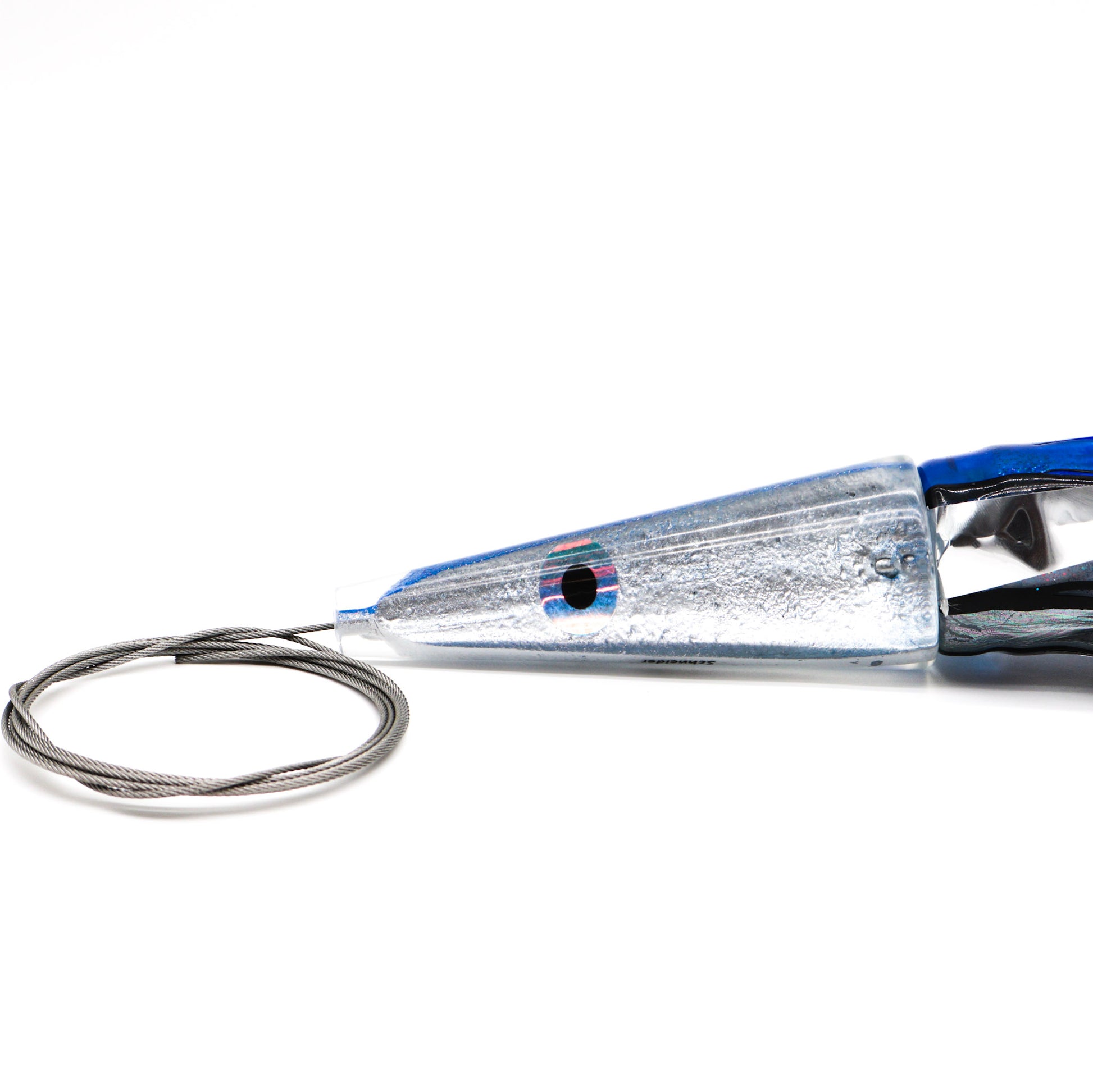 All of our rigs are built in-house using American-made materials. Every lure comes with a cable hook rig for strength and durability, paired with your choice of leader.