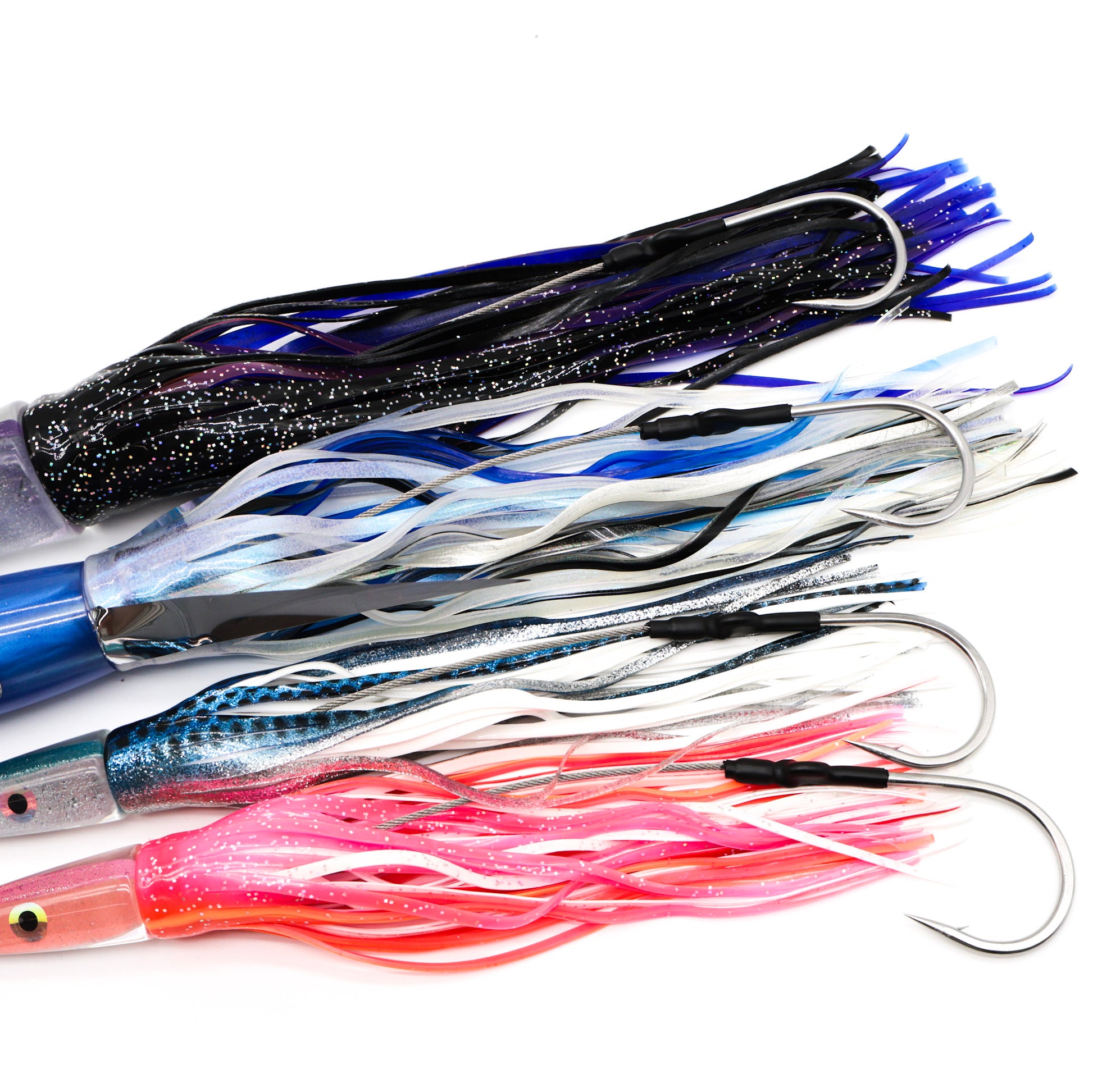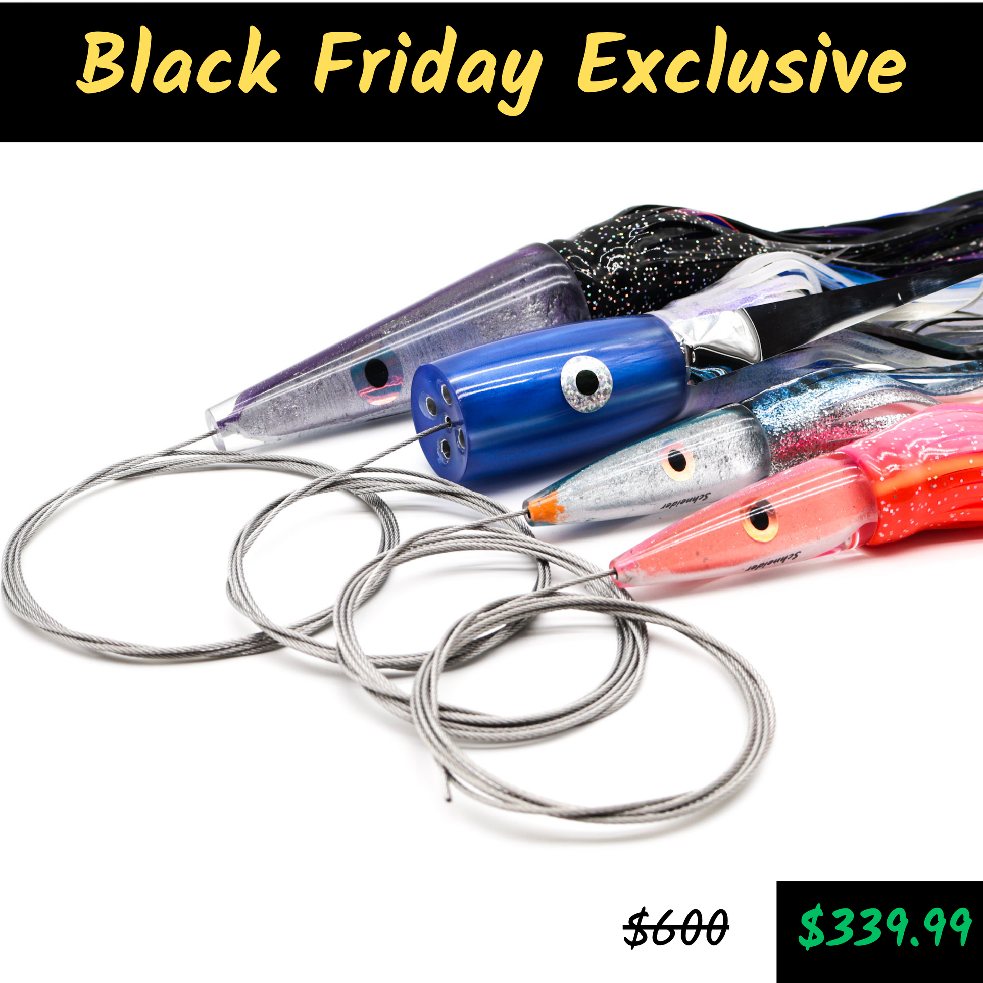 A 4 lure spread specifically made for high speed wahoo trolling just about anywhere you desire. the perfect mix of colors, shapes, and sizes to never leave you out of a bite.