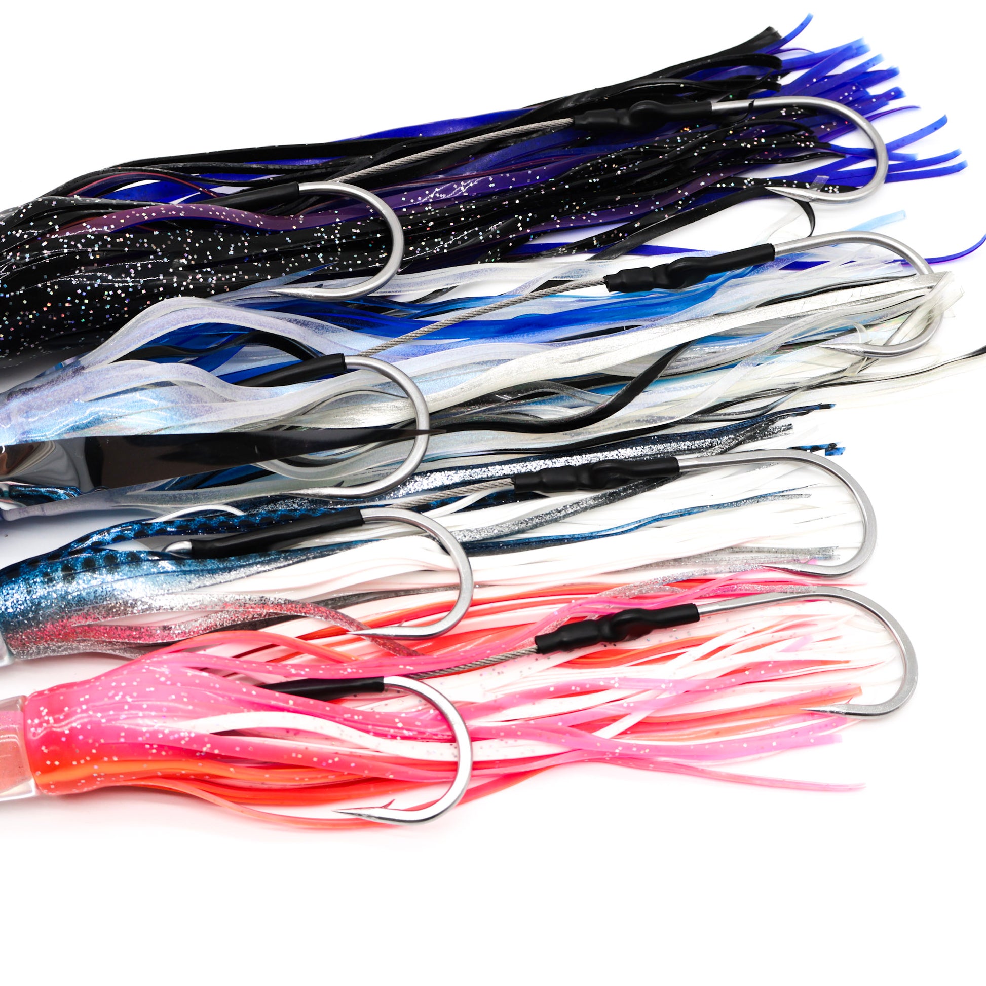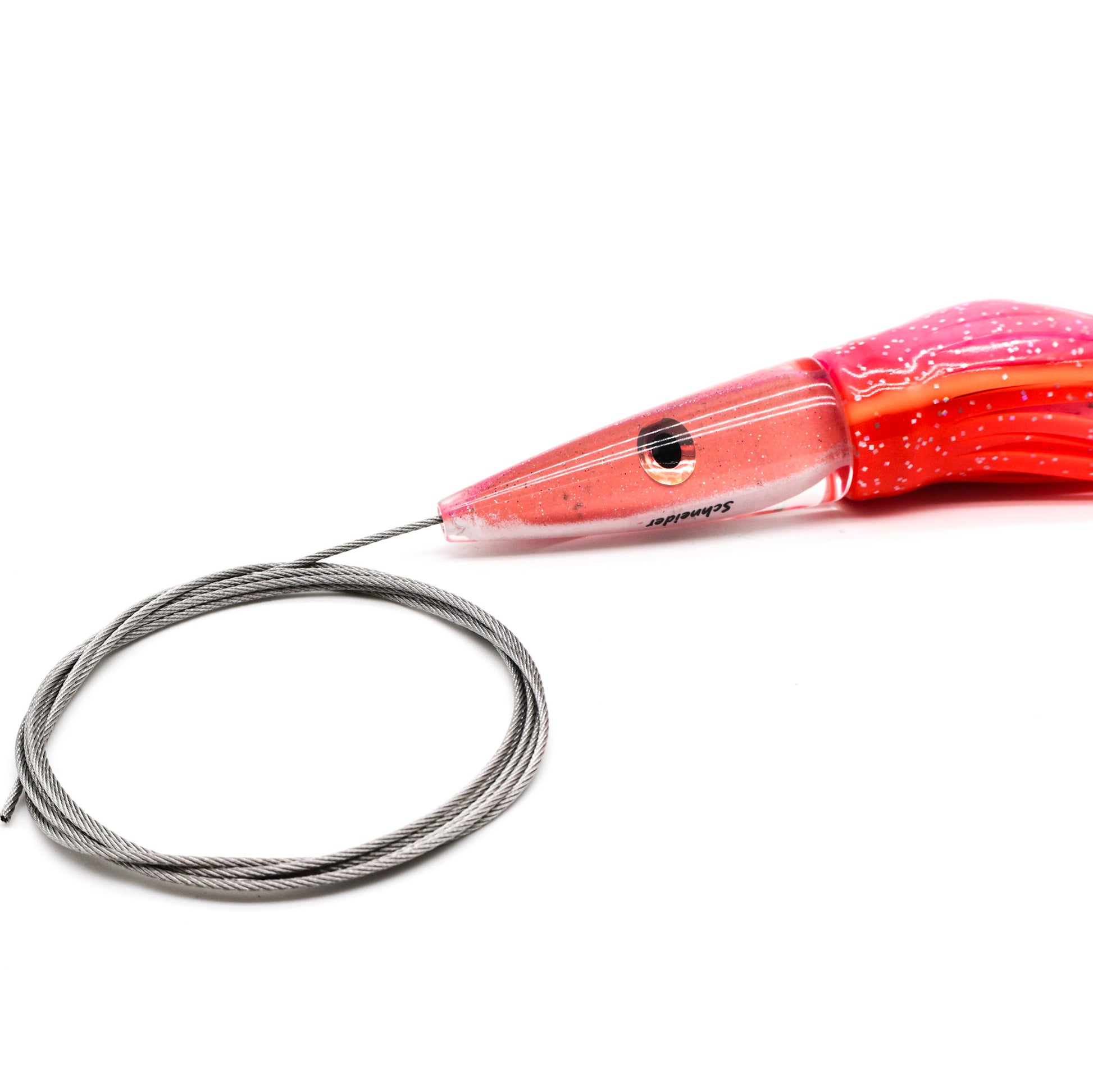 All of our rigs are built in-house using American-made materials. Every lure comes with a cable hook rig for strength and durability, paired with your choice of leader.